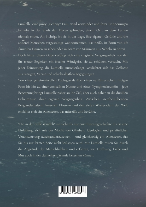 Tauchen Sie ein in eine Welt voller Magie, Geheimnisse und unvergesslicher Charaktere - "Die in der Stille wandelt" entführt in eine packende Fantasygeschichte, die alpenländische Kultur mit Action, Romantik und einem Hauch von Humor verbindet. Lumielle, eine junge "sichtige" Frau, wird verwundet und ihrer Erinnerungen beraubt in der Stadt der Eleven gefunden, deren Bewohner niemals auslernen. Als Sichtige ist sie in der Lage, ihre eigenen Gefühle und die anderer Menschen vergestalticht wahrzunehmen, das heißt, in Form von oft skurrilen Figuren zu sehen oder in Form von Stimmen aus Nebeln zu hören. Doch hinter dieser Gabe verbirgt sich eine tragische Vergangenheit, vor der sie ihr treuer Begleiter, der freche, aber liebevolle Windreiter, zu schützen versucht. Erst in der Geborgenheit, die ihr die Stadt bietet, wagt Lumielle es, ihre Erinnerungen zurückzuholen. Doch mit jeder Erinnerung, die sie wiedererlangt, verdichtet sich das Geflecht aus Intrigen, Verrat und schicksalhaften Begegnungen.Als die "Salige Frau", eine geheimnisvolle Gestalt aus Lumielles Vergangenheit, in ihren Träumen erscheint, wird ihr klar, dass sie eine Aufgabe von unermesslicher Bedeutung hat: Sie muss das Phylakterium, ein Artefakt von großer Macht, finden und das Licht, das ewiges Leben schenkt, in Sicherheit bringen. Denn Eusebius, der Anführer einer extremistischen Sekte namens GeFreNo, hat es auf das Licht abgesehen, das ewiges Leben verspricht, da seine eigene Lebenszeit zu enden droht. Mit seiner fanatischen Anhängerschaft hat er ein grausames Regime errichtet, das Angst und Unterdrückung verbreitet. Doch Lumielle ist bereit, sich ihm entgegenzustellen - auch wenn sie dafür alles riskieren muss.Eine Reise voller Gefahren und außergewöhnlicher Gefährten erwartet Sie. Von einem geheimnisumwobenen Fuchsgeist über einen verführerischen, listigen Faun bis hin zu einer entstellten Nonne und einer Nymphenfreundin - jede Begegnung bringt Lumielle näher an ihr Ziel, aber auch näher an die dunklen Geheimnisse ihrer eigenen Vergangenheit. Zwischen atemberaubenden Berglandschaften, finsteren Klostern und den tiefen Wasseradern der Welt entfaltet sich ein Abenteuer, das mitreißt und berührt.Doch es geht nicht nur um das Licht, sondern auch um die Kraft der Liebe und die Stärke, über sich selbst hinauszuwachsen. Lumielle verliebt sich in Firmian, einen Mann, der ihren Mut bewundert, aber mit ihrer Andersartigkeit zu kämpfen hat. Ihre Beziehung wird auf eine harte Probe gestellt, doch als Firmian selbstlos sein Leben riskiert, zeigt sich, wie stark Liebe sein kann - sogar im Angesicht des Todes."Die in der Stille wandelt" ist mehr als nur eine Fantasygeschichte. Es ist eine Einladung, sich mit der Macht von Glauben, Ideologien und persönlicher Verantwortung auseinanderzusetzen - und gleichzeitig ein Abenteuer, das Sie bis zur letzten Seite nicht loslassen wird. Mit Lumielle reisen Sie durch die Abgründe der Menschlichkeit und erfahren, wie Hoffnung und Mut auch in der dunkelsten Stunde bestehen können.
