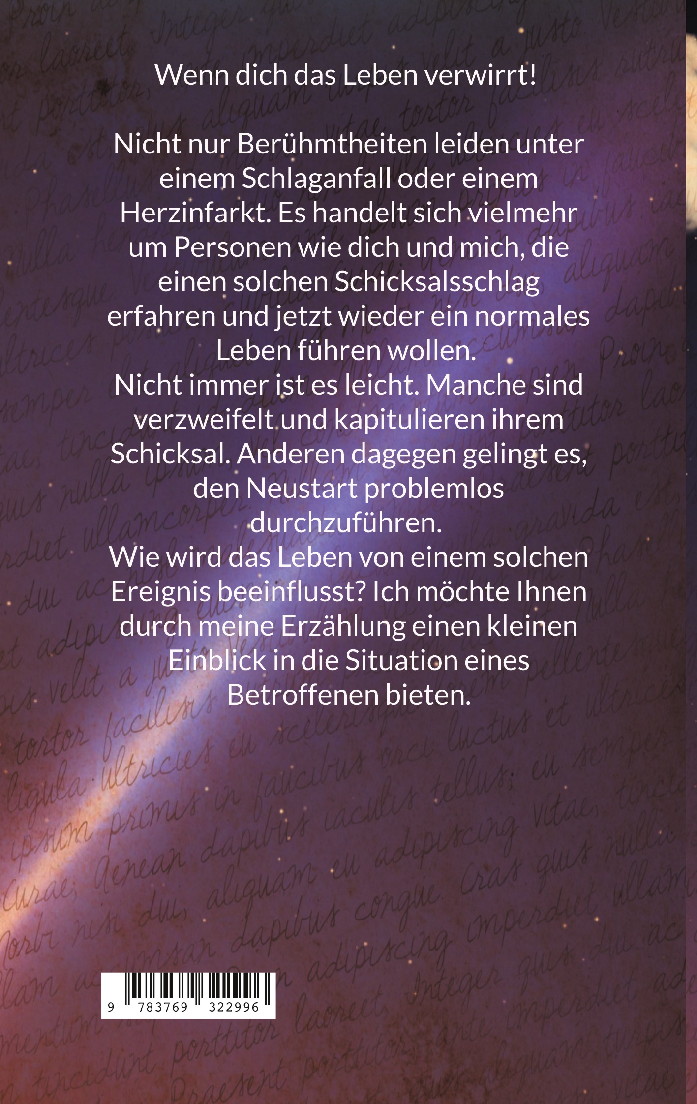 Nicht nur Berühmtheiten leiden unter einem Schlaganfall oder einem Herzinfarkt. Es handelt sich vielmehr um Personen wie dich und mich, die einen solchen Schicksalsschlag erfahren haben und jetzt wieder ein normales Leben führen wollen. Nicht immer ist es leicht. Manche sind verzweifelt und kapitulieren vor ihrem Schicksal. Anderen dagegen gelingt es, den Neustart problemlos durchzuführen. Wie wird das Leben von einem solchen Ereignis beeinflusst? Ich möchte Ihnen durch meine Erzählung einen kleinen Einblick in die Situation eines Betroffenen bieten.