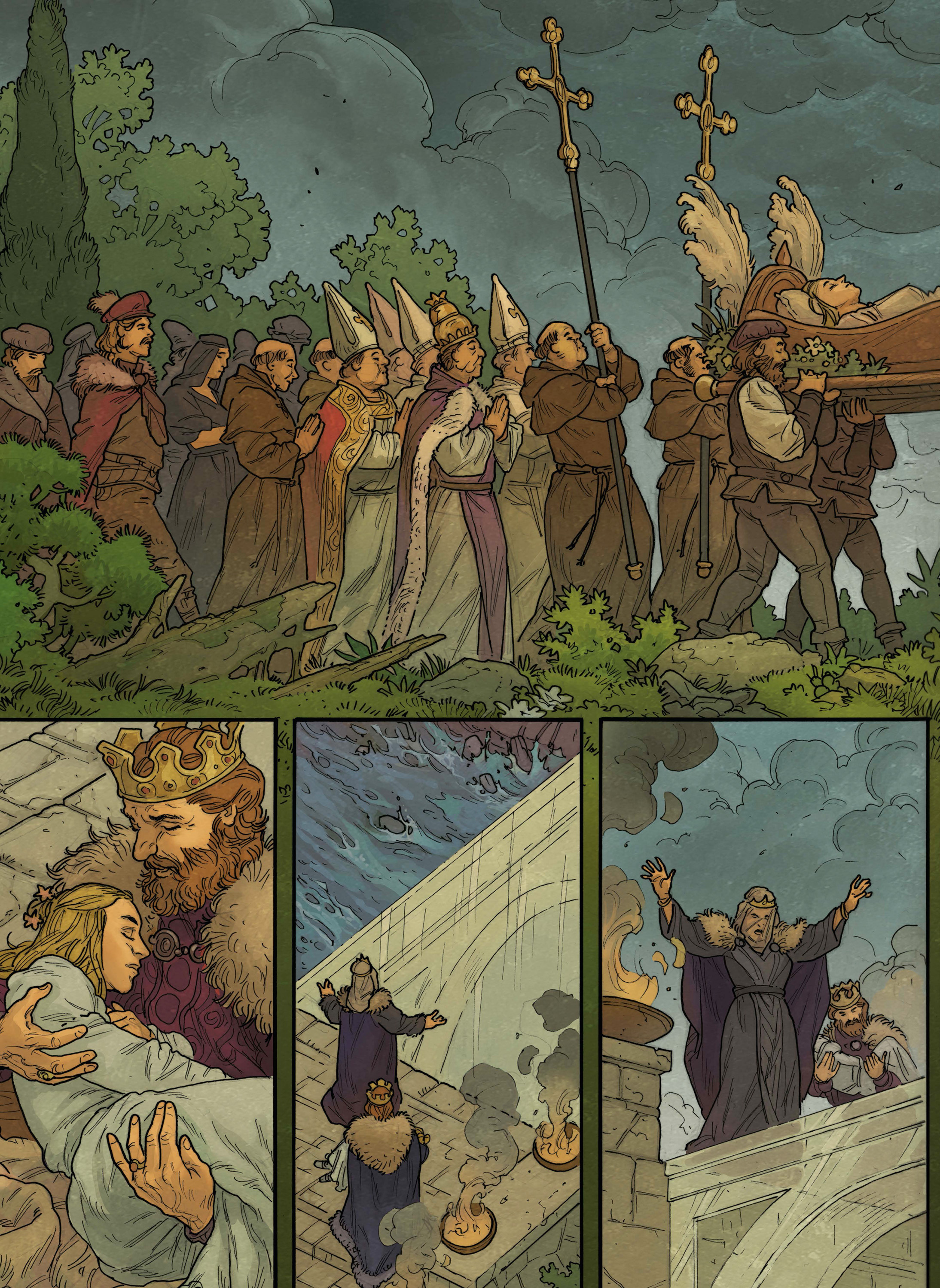 Das Märchen von der schlafenden Schönen existiert seit Jahrhunderten in vielen Versionen. Zwei davon haben unsere Vorstellung besonders stark geprägt, nämlich die von Charles Perrault (»La Belle au Bois Dormant« von 1697) und natürlich »Dornröschen« der Gebrüder Grimm (1812). In beiden steht eine verwunschene Prinzessin im Mittelpunkt, deren Schicksal unwiderruflich mit dem ihres schlafenden Reiches verbunden ist und die nur durch einen Königssohn reinen Herzens geweckt werden kann. Es gibt jedoch auch andere, ältere und dunklere Versionen, die recht weit von dieser schönen, sentimentalen und idealisierten Geschichte entfernt sind. In einer katalanischen Novelle aus dem frühen 14. Jahrhundert etwa ist die Handlung weitaus triebhafter, das Tun und Lassen des Märchenprinzen zweifelhafter und zwiespältiger. Das vorliegende Buch bietet beide Seiten derselben Geschichte.