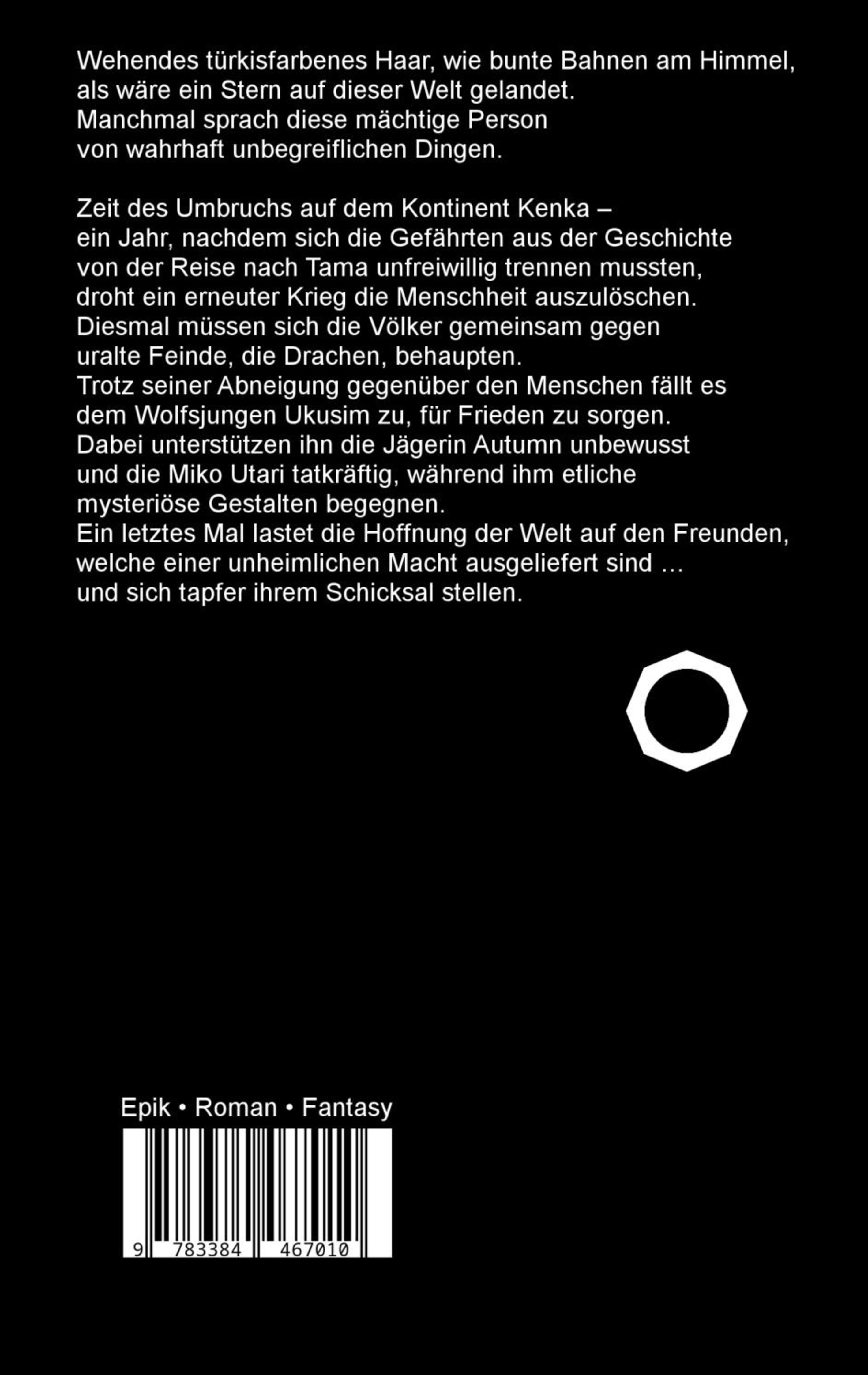 Zeit des Umbruchs auf dem Kontinent Kenka - ein Jahr, nachdem sich die Gefährten aus der Geschichte von der Reise nach Tama unfreiwillig trennen mussten, droht ein erneuter Krieg die Menschheit auszulöschen. Diesmal müssen sich die Völker gegen uralte Feinde, die Drachen, behaupten. Trotz seiner Abneigung gegenüber den Menschen fällt es dem Wolfsjungen Ukusim zu, für Frieden zu sorgen. Dabei unterstützen ihn die Jägerin Autumn unbewusst und die Miko Utari tatkräftig, während ihm etliche mysteriöse Gestalten begegnen. Ein letztes Mal lastet die Hoffnung der Welt auf den Freunden, welche einer unheimlichen Macht ausgeliefert sind ... und sich tapfer ihrem Schicksal stellen.
