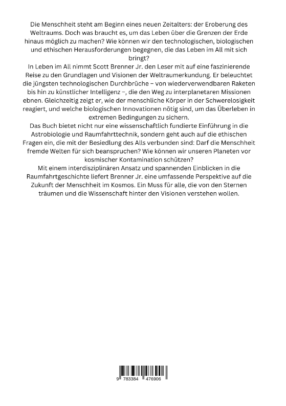 | Schlagworte | Astrobiologie • Extraterrestrisches Leben • interplanetare Forschung • Leben im All • Marsmission • Menschheit im Kosmos • Mondbasis • Raumfahrttechnologie • Schwerelosigkeit • Weltraumerkundung • Weltraumkolonisation |