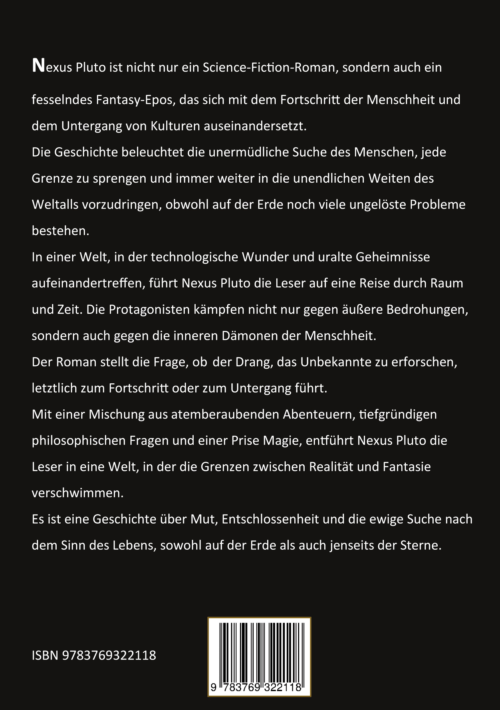 Mit einer Mischung aus atemberaubenden Abenteuern, tiefgründigen philosophischen Fragen und einer Prise Magie, entführt Nexus Pluto die Leser in eine Welt, in der die Grenzen zwischen Realität und Fantasie verschwimmen. Es ist eine Geschichte über Mut, Entschlossenheit und die ewige Suche nach dem Sinn des Lebens, sowohl auf der Erde als auch jenseits der Sterne.