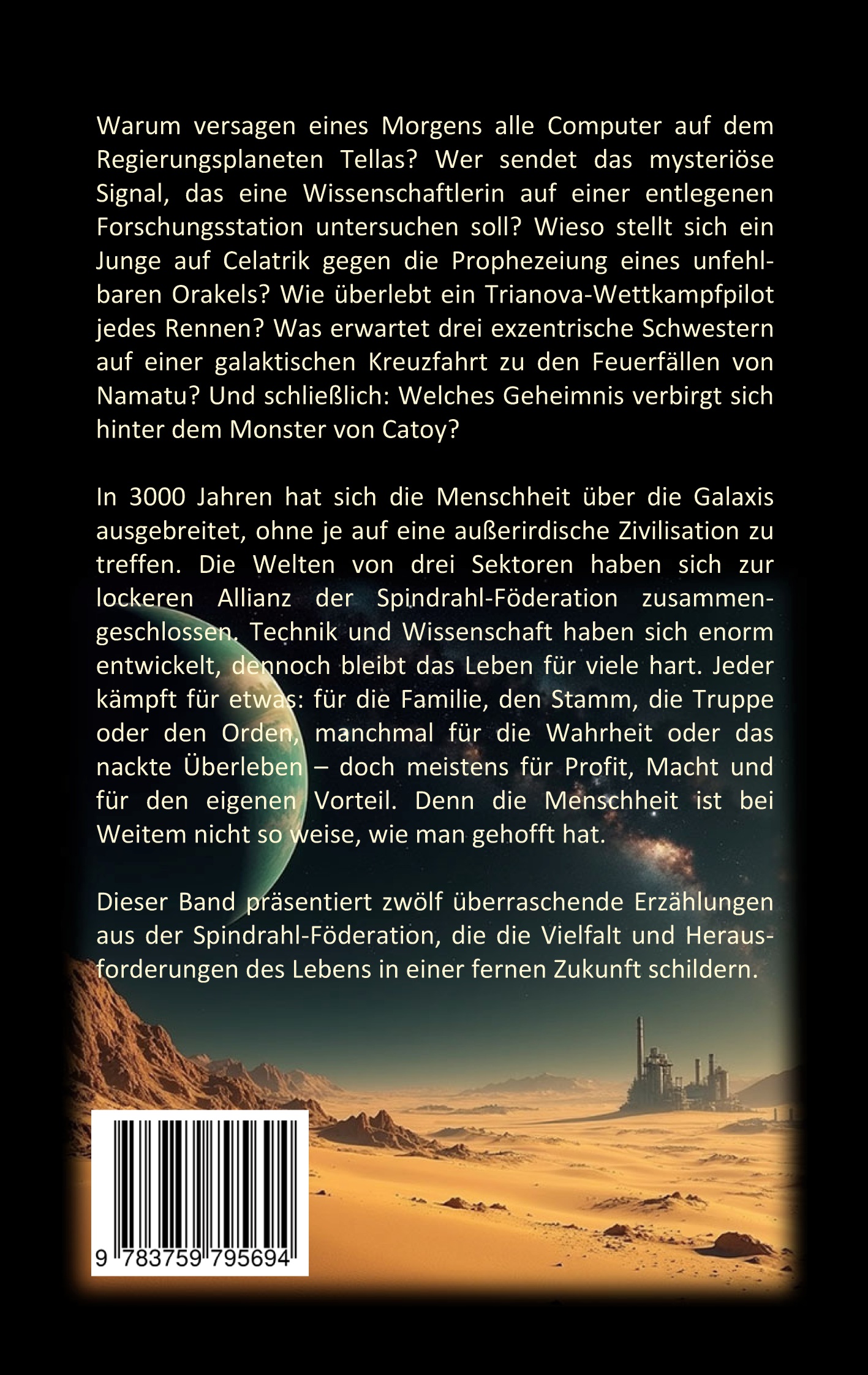 Dieser Band präsentiert zwölf überraschende Erzählungen aus der Spindrahl-Föderation, die die Vielfalt und Herausforderungen des Lebens in einer fernen Zukunft schildern.