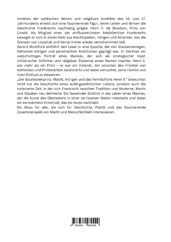 | Schlagworte | Adelsgeschichte • Bourbonenprinz • Bourbonen und Macht • Condé-Dynastie • Französische Geschichte • Französischer Adel • Henri II. de Bourbon • Historische Biografie • Hugenottenkriege • Königshof Frankreich • Renaissance Frankreich |
