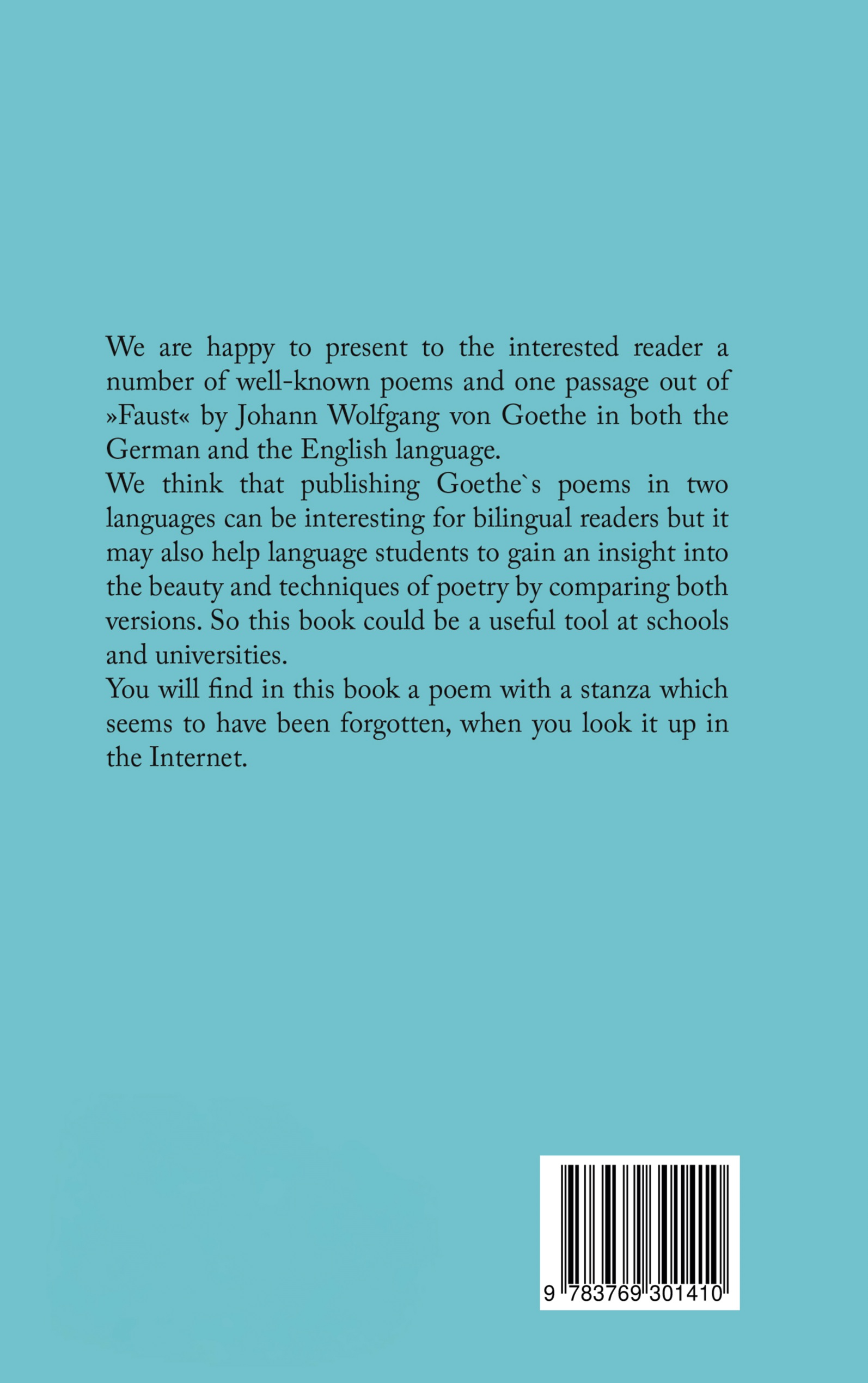 Albrecht Kienow, an anglicist and former teacher at a grammar school has begun, after his retirement, to engage himself in adapting selected lyrical works of romantic poets using the English language. He started with the songbook of Theodor Storm, which is already available on the market. When he realized that he could do such translations successfully, he chose Goethe as the next poet and on careful deliberation he decided to discuss with me if it made sense to present also this new adaptation of Goethe's poems to a larger public. In the end he and I thought that we should venture the step of going public with his adaptations.