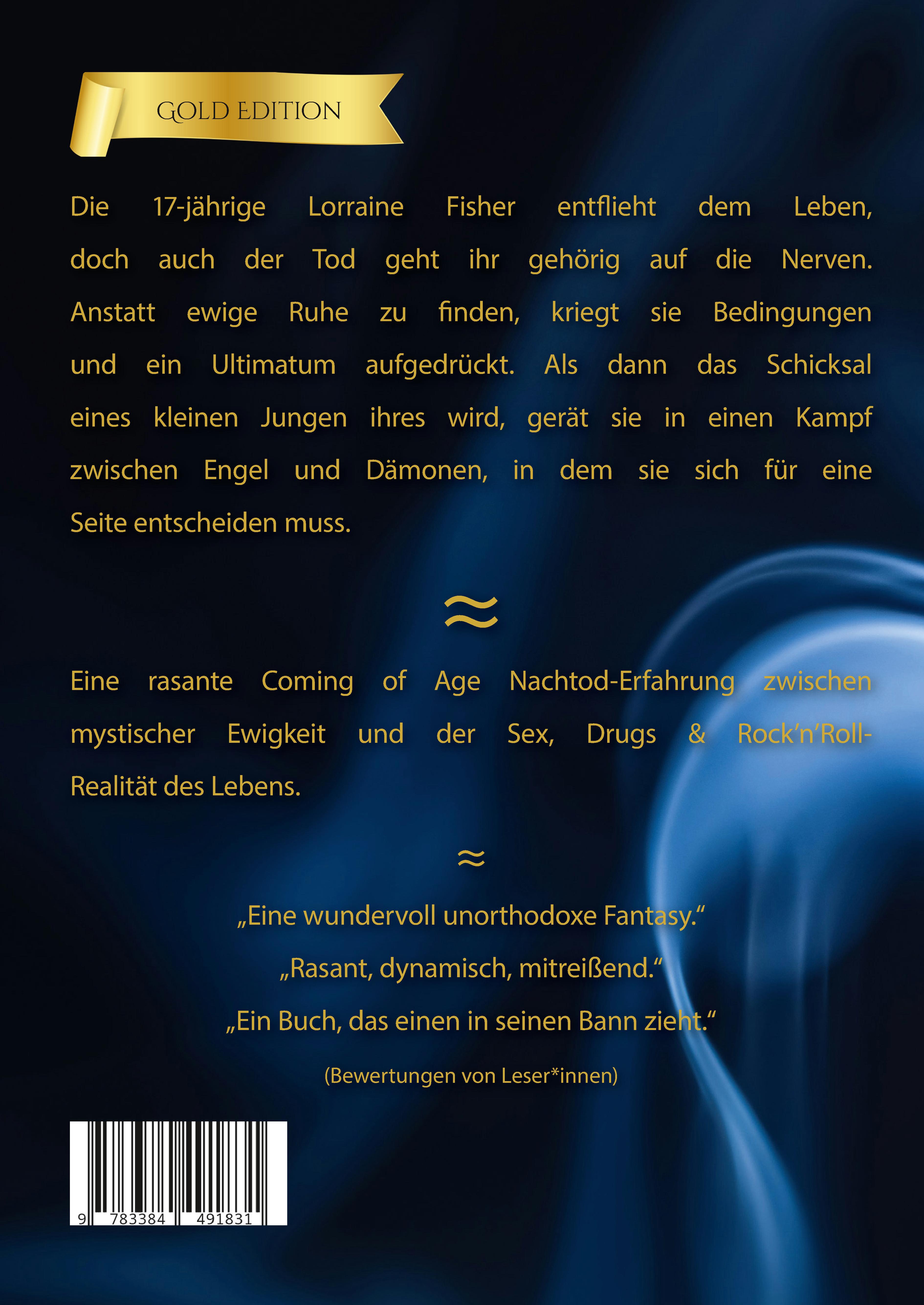 Die 17-jährige Lorraine Fisher ist tot. Dennoch geht ihre Geschichte weiter. Dabei wollte sie doch nur ihre Ruhe haben. Was wollen nur alle von ihr? Plötzlich kriegt sie Bedingungen und ein Ultimatum aufgedrückt, Engel und Dämonen sind gleichermaßen hinter ihr her und laufend spürt sie diesen eigenartigen Sog in die Dunkelheit. Der Nach-Tod geht ihr schnell gehörig auf die Nerven. Sie beschließt zu fliehen und fordert damit unweigerlich das Schicksal heraus. Vorsicht, dieses Buch hat es in sich!Eine rasante Teenage-Nach-Tod-Erfahrung zwischen mystischer Ewigkeit und der Sex-Drugs-Rock'n'Roll-Realität des Lebens. Eine fesselnde Dark-Fantasy Kreation, die Ihr lieben werdet!Diese Geschichte ist so direkt, heftig und ungeschönt wie das Leben nun mal ist. Lorraine nimmt kein Blatt vor den Mund und lässt sich von niemanden etwas sagen. Sie kämpft ihren eigenen Kampf, aber das Schicksal hat offensichtlich andere Pläne mit ihr. Ein Buch über das, was in einem steckt: der Ärger, die Ängste, die Unsicherheit genauso wie Mut und Stärke. Wir erschaffen im Leben unsere eigene Realität und das zeigt Lorraine auf schonungslose Art und mit direkter Sprache. Schließlich ist auch das Leben voller Turbulenzen. Und natürlich geht es um die Sehnsucht nach Dunkelheit, seelenwärmende Melancholie, Verbotenes, Tabus, psychodelischen Teenage-Sex, genauso wie zornig, vierliebt, verwirrt und ahnungslos zu sein, bis man auf sein Innerstes hört und seinen Weg findet.Viel Spaß beim Lesen!Benedict ErnstFollow me on Instagram: @der_benedict_ernst