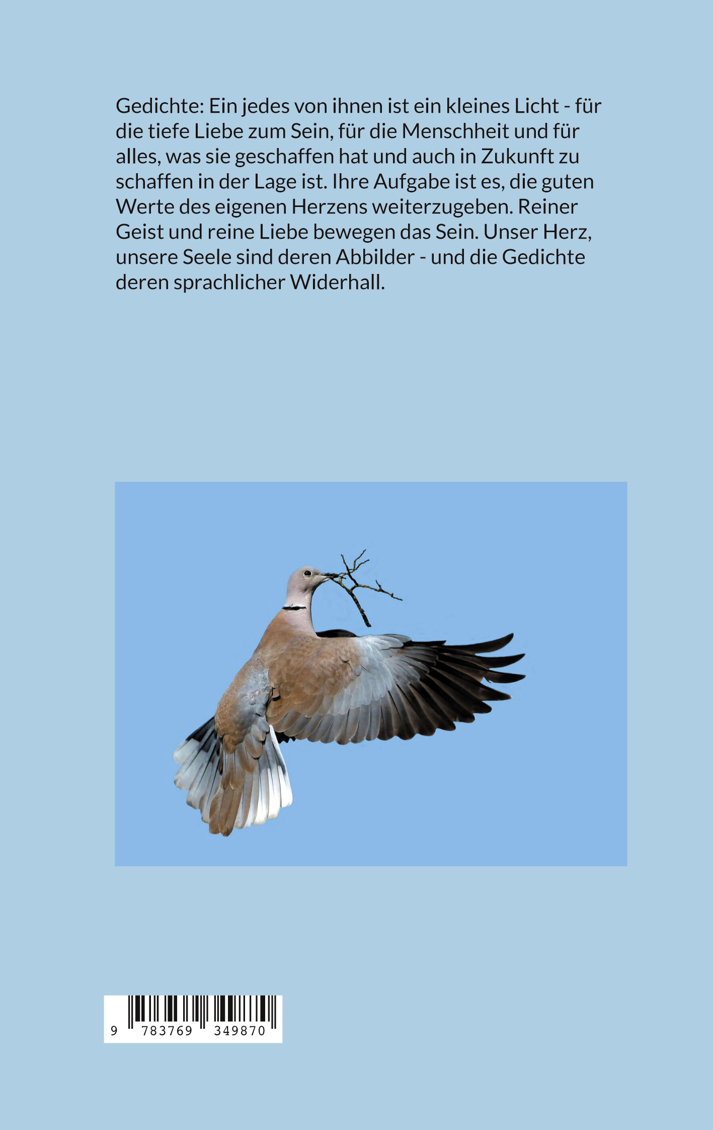 Gedichte: Ein jedes von ihnen ist ein kleines Licht - für die Liebe zum Sein, für die Menschheit und für alles, was sie geschaffen hat und auch in Zukunft zu schaffen in der Lage ist. Ihre Aufgabe ist es, die guten Werte des eigenen Herzens weiterzugeben. Reiner Geist und reine Liebe bewegen alles, was ist. Unser Herz und unsere Seele sind deren Abbilder - und die Gedichte deren sprachlicher Ausdruck.