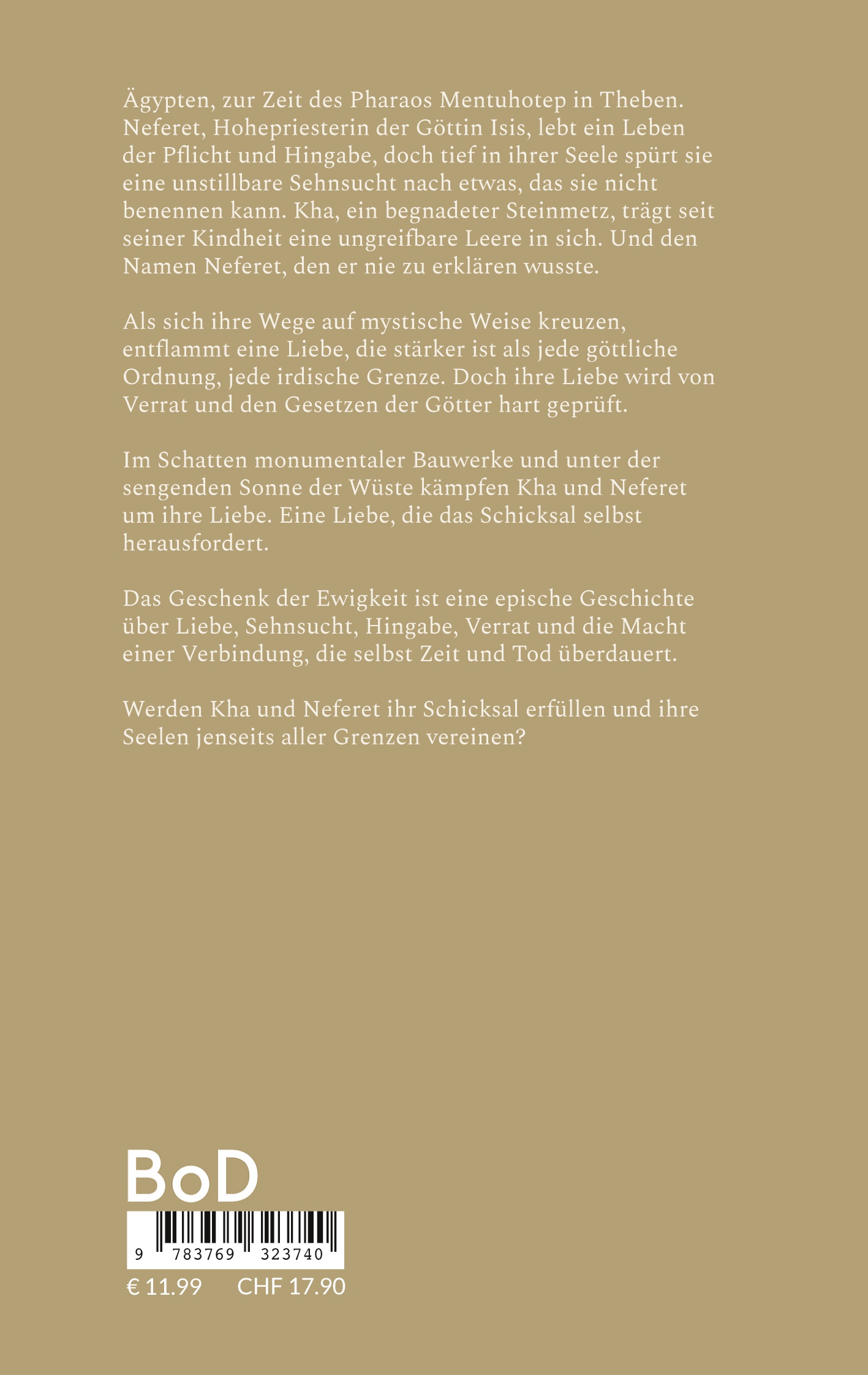 Das Geschenk der Ewigkeit ist eine epische Geschichte über Liebe, Sehnsucht, Hingabe, Verrat und die Macht einer Verbindung, die selbst Zeit und Tod überdauert.