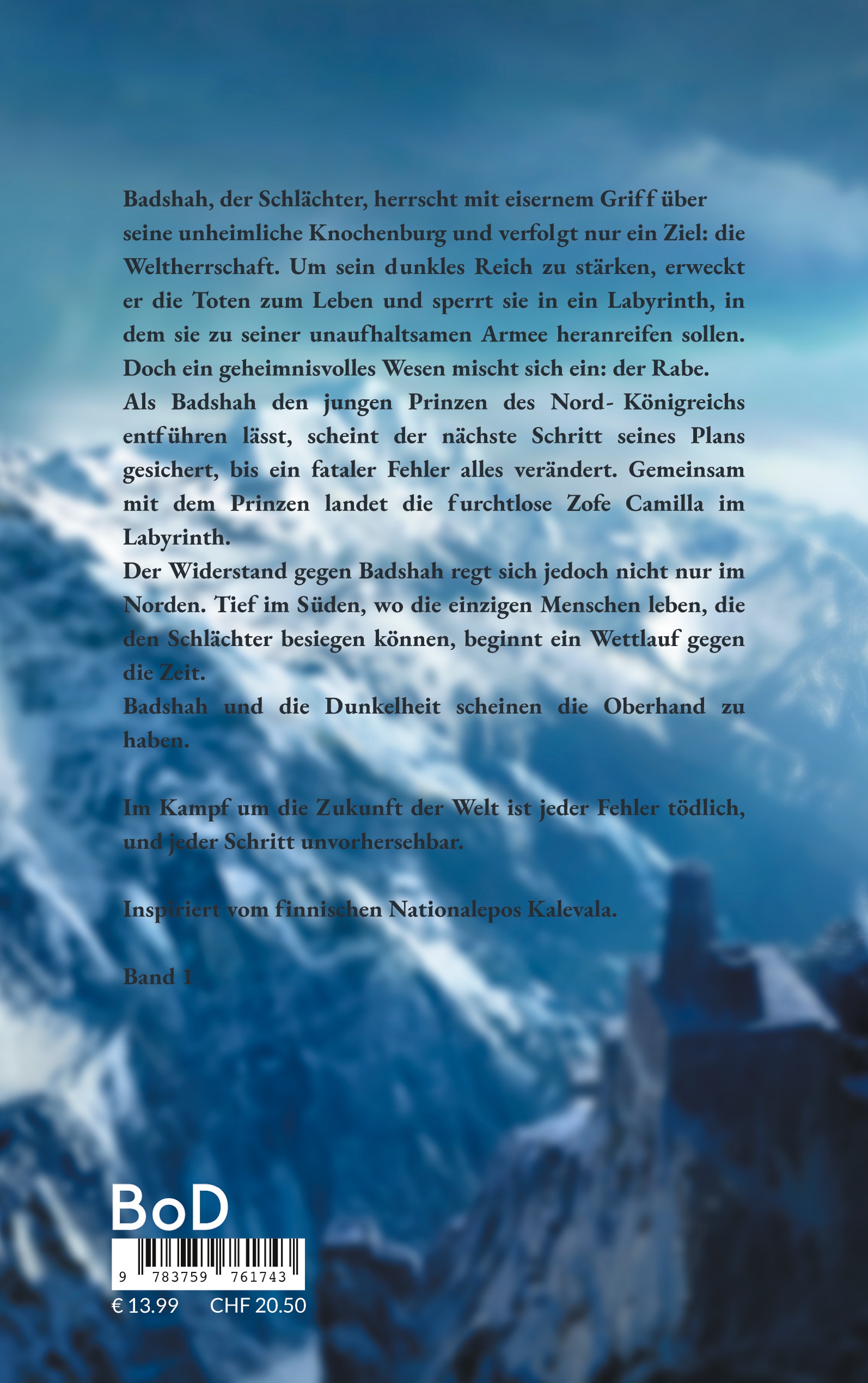| Schlagworte | Auserwählte gegen finstere Magie • Düstere Fantasy für lange Winterabende • Düstere High Fantasy mit Nekromantie • Epischer Fantasyroman mit tödlichen Prüfungen • Fantastisches Märchen für Erwachsene • Fantasyabenteuer mythische Heldenreise • Fantasyroman • Fantasyroman mit Raben • Heroische Fantasy mit Magie • High Fantasy • High Fantasy Abenteuer Roman deutsch • High Fantasy Widerstand gegen Tyrannen • Kalevala • Kampf gegen dunklen Herrscher • Labyrinth Abenteuer mit tödlichen Fallen • Märchen für Erwachsene • Märchenhafte Fantasy für Erwachsene • Mythen Legenden epische Rettungsmission • Nordische Mythen und Legenden Fantasyroman • Rabe |