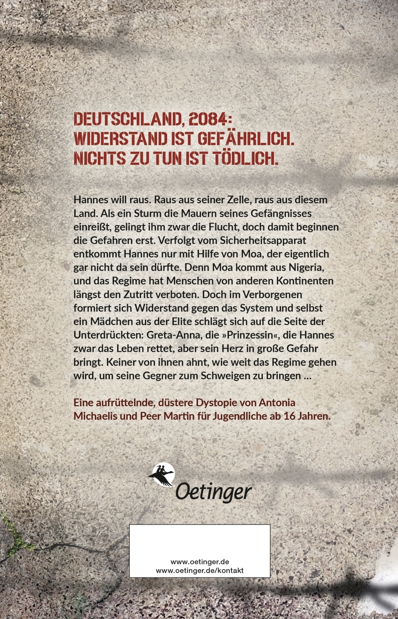 Hannes will raus. Raus aus seiner Zelle, raus aus diesem Land. Als ein Sturm die Mauern seines Gefängnisses einreißt, gelingt ihm zwar die Flucht, doch damit beginnen die Gefahren erst. Verfolgt vom Sicherheitsapparat entkommt Hannes nur mit Hilfe von Moa, der dem Regime aus ganz anderen Gründen ein Dorn im Auge ist. Denn Hannes ist nicht der Einzige, der sich gegen das System auflehnt: Im Verborgenen formiert sich Widerstand gegen die Mächtigen. Und selbst ein Mädchen aus der Elite kann sich auf die Seite der Unterdrückten schlagen, wie Greta-Anna, die Hannes zwar das Leben rettet, aber sein Herz in große Gefahr bringt. Doch keiner von ihnen ahnt, wie weit das Regime gehen wird, um seine Gegner zum Schweigen zu bringen …