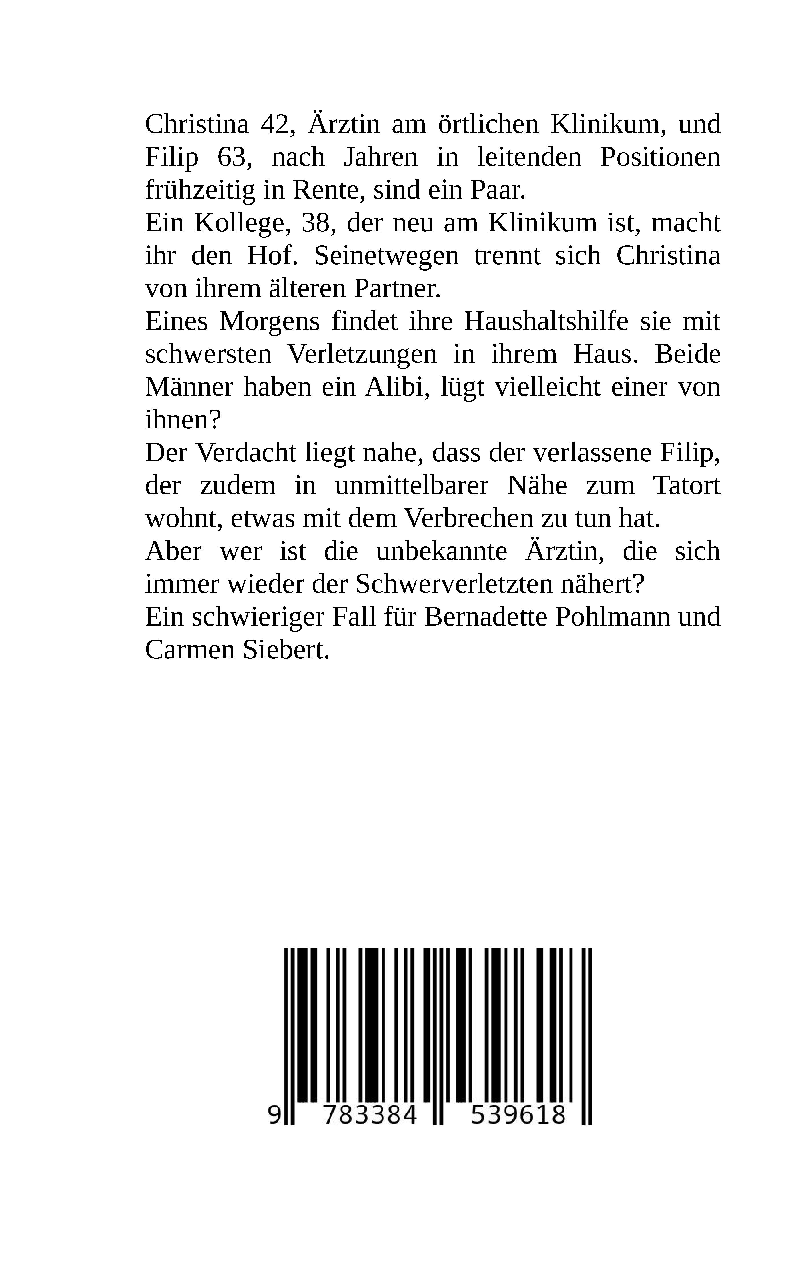 Im sechsten Fall der autistischen Kriminalhauptkommissarin Carmen Siebert geht es um ein Paar, das einen Altersunterschied von zwanzig Jahren hat. Die Partnerin ist Ärztin und verliebt sich in einen fast gleichaltrigen Kollegen. Für diesen verlässt sie ihren älteren Partner. Der Kollege ist aber nur an Sex interessiert und macht sich im Klinikum an viele Frauen heran. Nach der Trennung von ihm wird die Ärztin von ihrer Haushälterin schwer verletzt aufgefunden. Ein kniffliger Fall für das Team um Bernadette Pohlmann und Carmen Siebert.