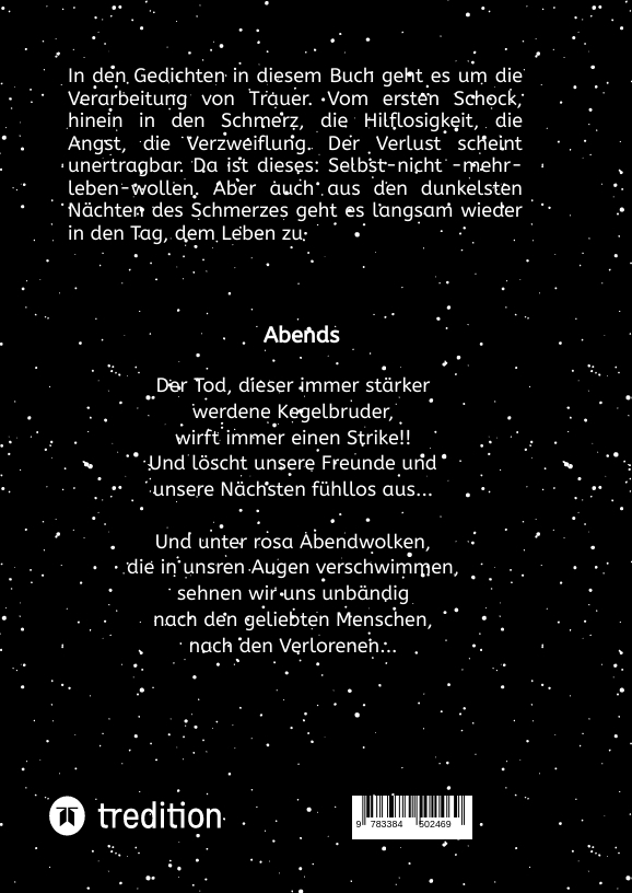 | Schlagworte | Gedichte • Gefühle • Kummer • Lyrik • Schmerzbewältigung • Tod • Trauer • Zurück ins Leben |