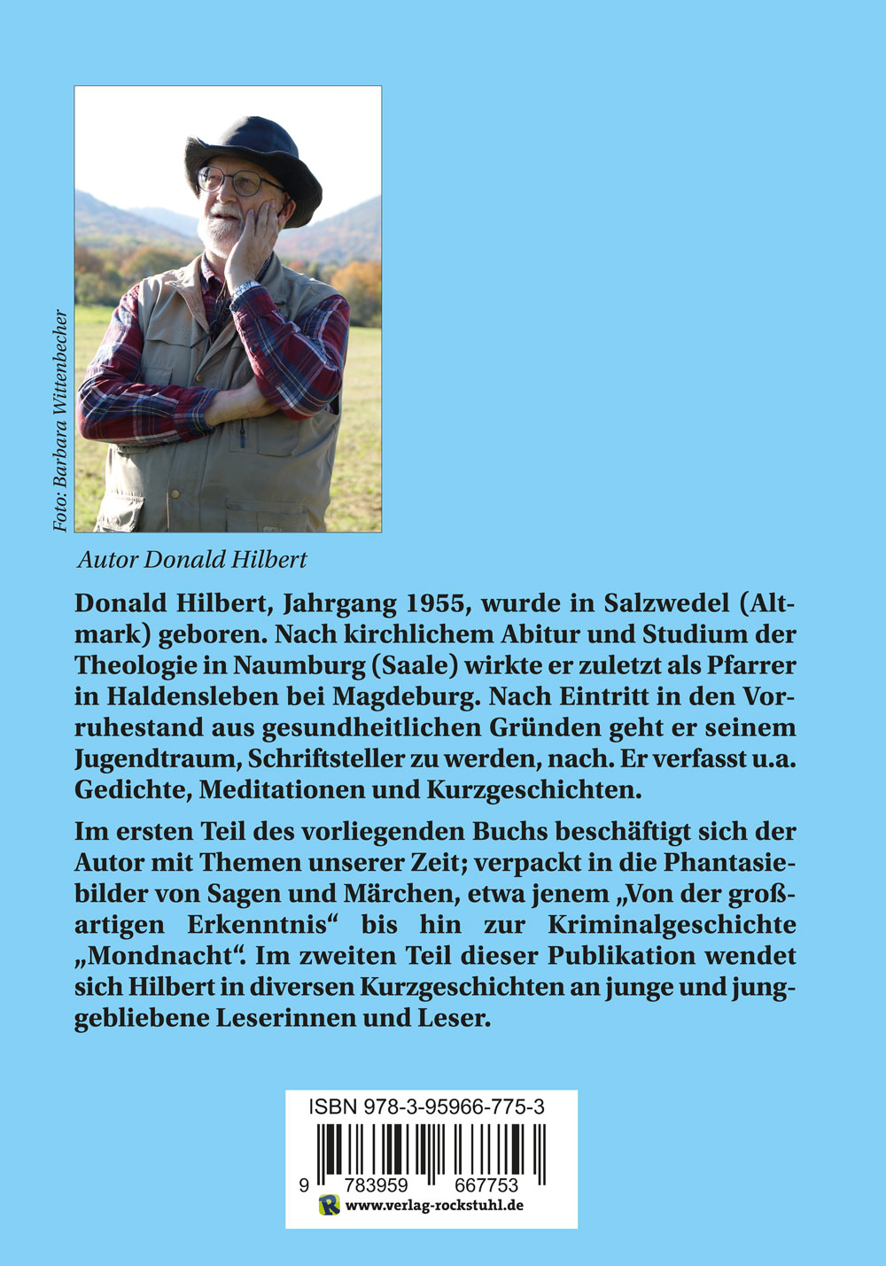 Donald Hilbert, Jahrgang 1955, wurde in Salzwedel (Altmark) geboren. Nach kirchlichem Abitur und Studium der Theologie in Naumburg (Saale) wirkte er zuletzt als Pfarrer in Haldensleben bei Magdeburg. Nach Eintritt in den Ruhestand geht er seinem Jugendtraum, Schriftsteller zu werden, nach. Er verfasst u.a. Gedichte, Meditationen und Kurzgeschichten.