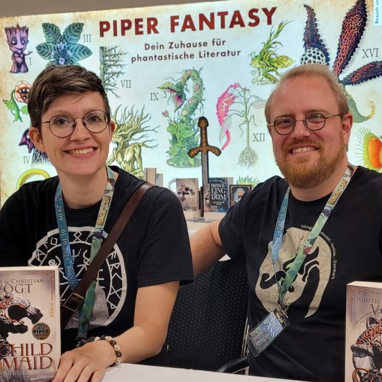 Hinter den beiden Initialen steckt das Autor*innenduo Judith und Christian Vogt. Die beiden leben in Aachen und teilen die Leidenschaft für die drei großen F: Fantastik, Folktanz, Feminismus. Während Judith sich aufs Schreiben spezialisiert hat, versucht Christian als Physiker, ungelösten Mysterien auf den Grund zu gehen. Über die Physik fanden sie schließlich auch in die große Umbruchszeit der Naturwissenschaften: die 1920er! Ihr erster gemeinsamer Roman, „Die zerbrochene Puppe“, erhielt 2013 den Deutschen Phantastik Preis, den sie 2014 für die beste Kurzgeschichten-Anthologie ein zweites Mal einheimsen konnten. "Schildmaid - Das Lied der Skaldin" erhielt 2024 den Inklings-Preis, der Vorgängerband von "Anarchie Déco 1930" - "Anarchie Déco" - stand 2022 auf der Shortlist des Seraph-Literaturpreises. Wenn sie nicht gerade Romane schreiben, designen sie Pen&Paper-Rollenspiele oder schreiben Essays und Sachtexte, zum Beispiel fürs Science-Fiction- und Fantasy-Portal TOR Online. Judith podcastet außerdem beim Genderswapped Podcast und bringt das Kurzgeschichtenmagazin „Queer*Welten“ heraus.
