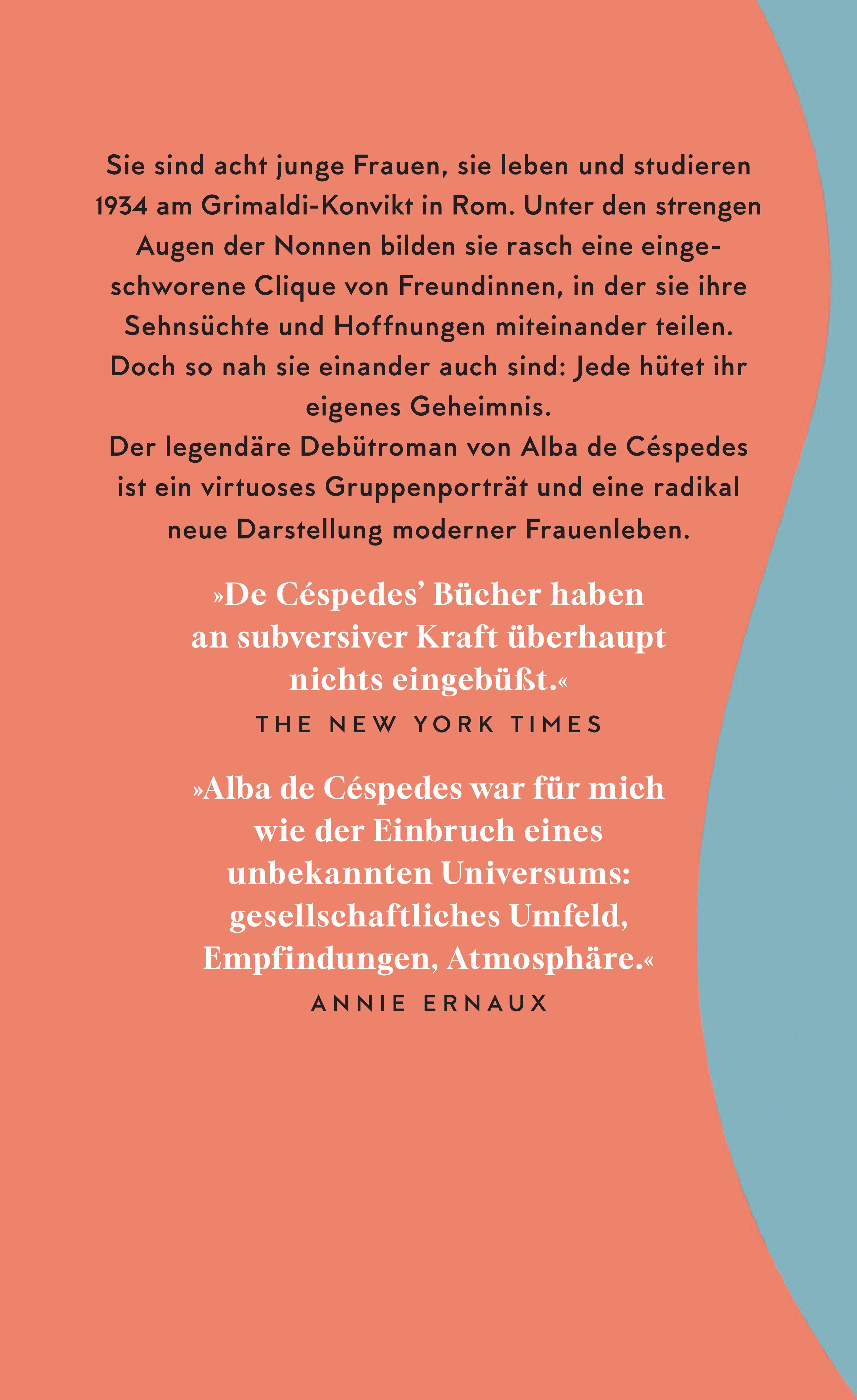 Zum Zeitpunkt seiner Publikation 1938 erlebte Alba de Céspedes' grandioser Debütroman sofortige Zensur durch die faschistischen Behörden unter Mussolini. Was vor uns liegt, ein virtuoses Gruppenporträt und eine radikal neue Darstellung moderner Frauenleben, erscheint nun in einer schillernden Neuübersetzung.
