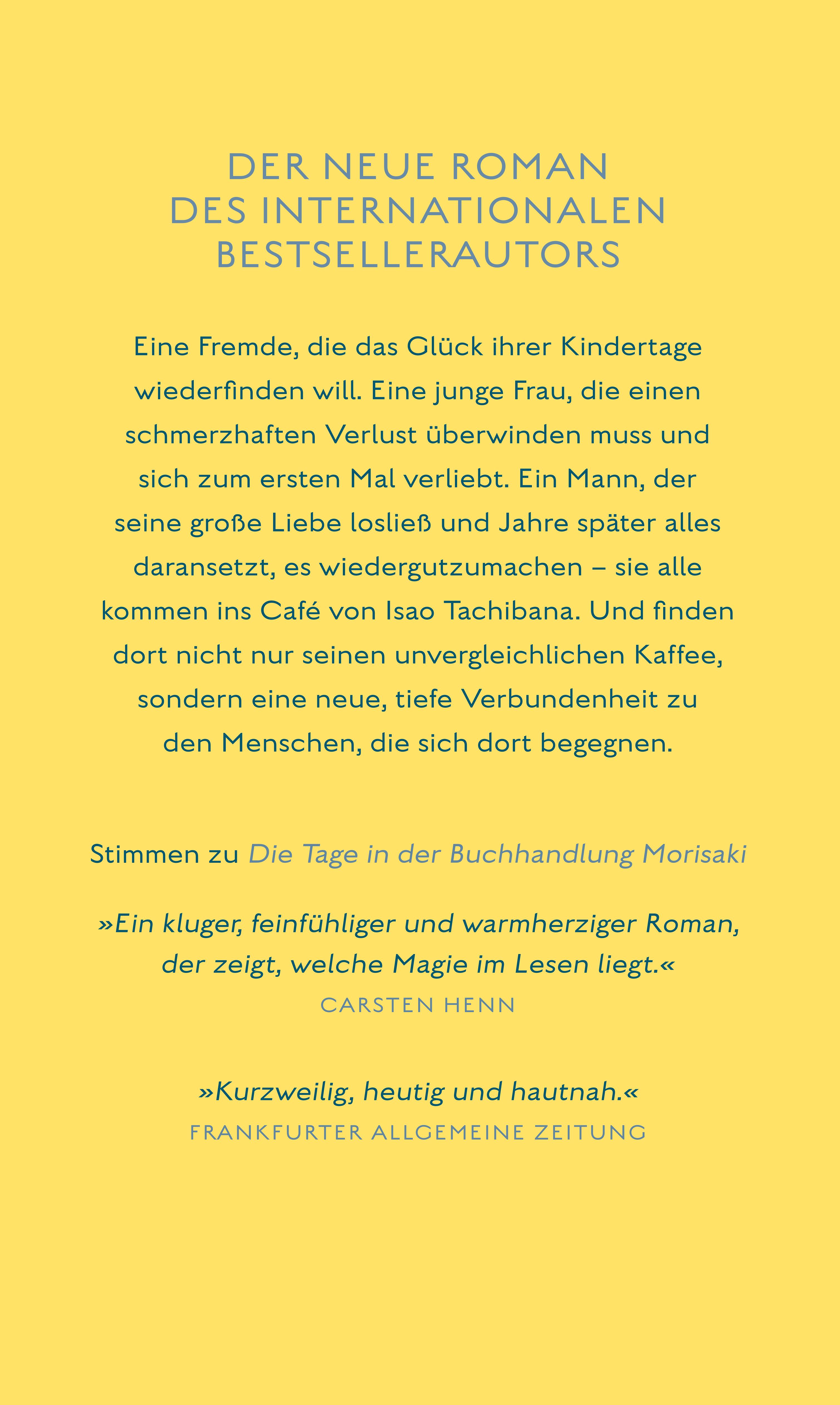 Der neue Roman des internationalen Bestsellerautors Satoshi Yagisawa versammelt bittersüße, herzerwärmende Geschichten um Liebe und Verlust rund um das Café Torunka und die besonderen Menschen, die sich hier begegnen.