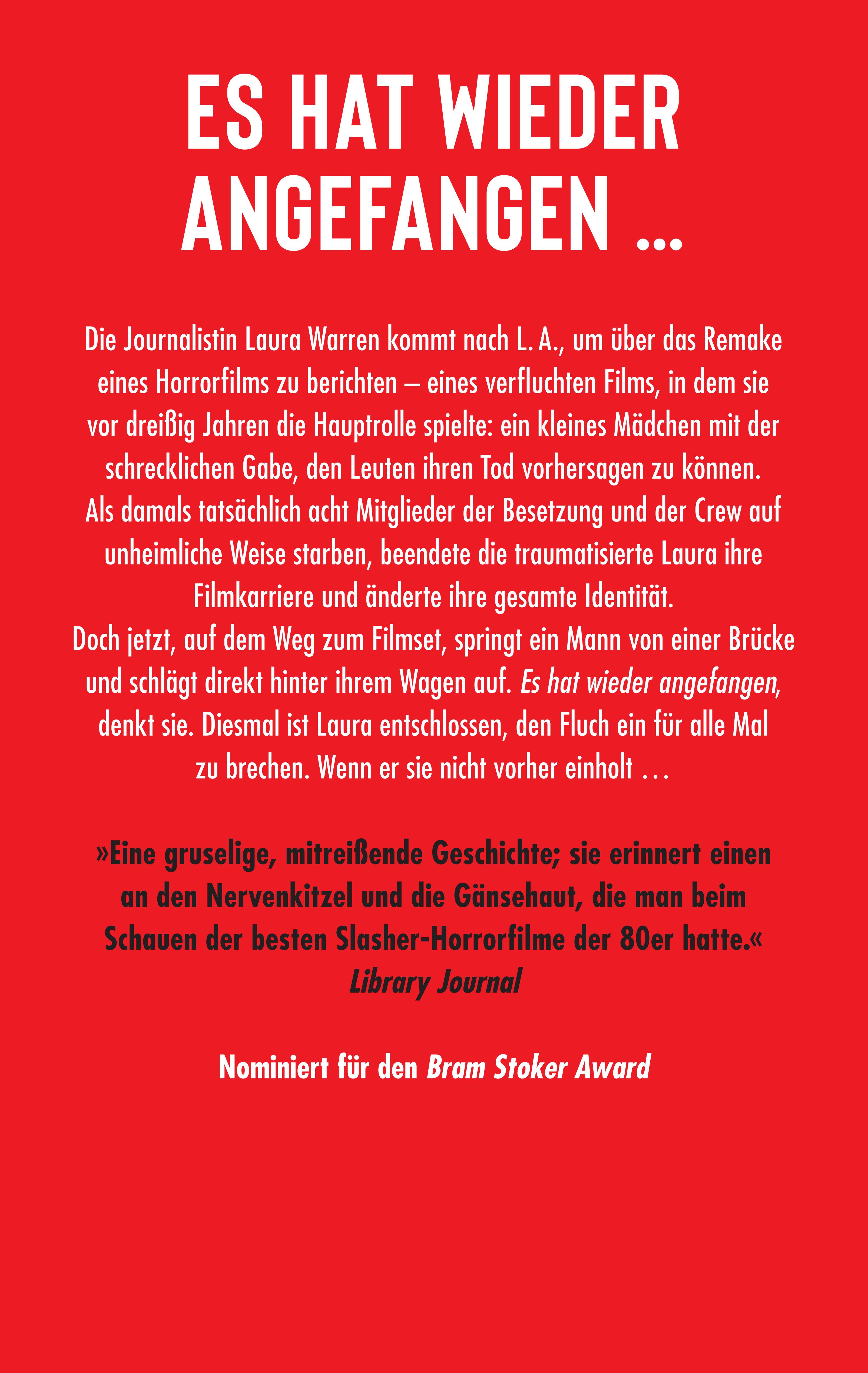 Die Journalistin Laura Warren kommt nach L.A., um über das Remake eines Horrorfilms zu berichten - eines verfluchten Films, in dem sie vor dreißig Jahren die Hauptrolle spielte: ein kleines Mädchen mit der schrecklichen Gabe, den Leuten ihren Tod vorhersagen zu können. Als damals tatsächlich acht Mitglieder der Besetzung und der Crew auf unheimliche Weise starben, beendete die traumatisierte Laura ihre Filmkarriere und änderte ihre gesamte Identität. Doch jetzt, auf dem Weg zum Filmset, springt ein Mann von einer Brücke und schlägt direkt hinter ihrem Wagen auf. Es hat wieder angefangen, denkt sie. Diesmal ist Laura entschlossen, den Fluch ein für alle Mal zu brechen. Wenn er sie nicht vorher einholt...