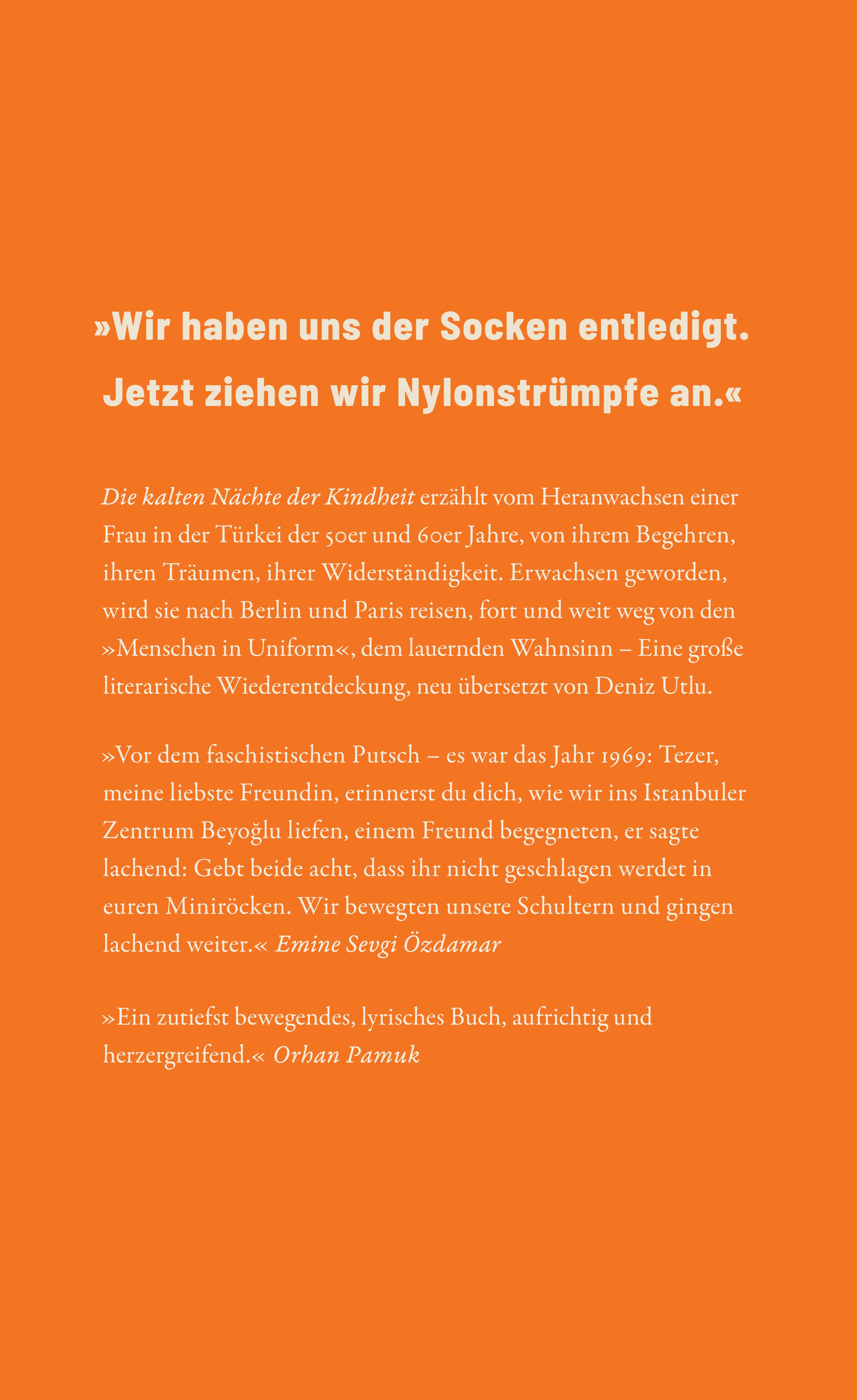 Erwachsen geworden, wird sie nach Berlin, Paris und Zürich reisen, fort und weit weg von der Türkei und den »Menschen in Uniform«, dem lauernden Wahnsinn. Sie tauscht die heimischen Obstgärten und Klassenzimmer der Nonnenschule ein gegen die Straßen und Cafés europäischer Hauptstädte - und gegen das Schreiben. Um eine Welt zu erfinden, die ihr entspricht. Indes wird sie über Jahre in eine psychiatrische Anstalt eingewiesen. Doch selbst das kann ihren Willen nicht brechen.
