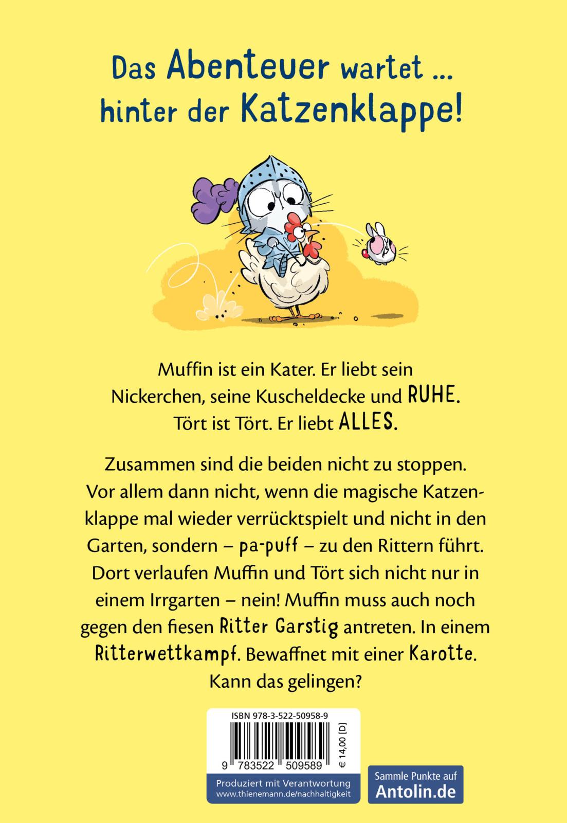 Auch in seinem zweiten Abenteuer ist das Superhelden-Duo Muffin & Tört machtlos gegen die magische Katzenklappe: Pa-Puff! Schon landen die beiden im Land der Ritter und mitten in einer Auseinandersetzung zwischen dem alten König, der Prinzessin Rubina und Ritter GARSTIG. Dieser fordert Muffin kurzerhand zum Ritterturnier heraus. Zum Glück hat Muffin die Prinzessin und Tört auf seiner Seite. Doch Ritter GARSTIG spielt nicht mit fairen Mitteln plötzlich hängt das Schicksal aller von einer KAROTTE ab. Und einem Teller voller klebriger Marmeladen-Sandwiches ...