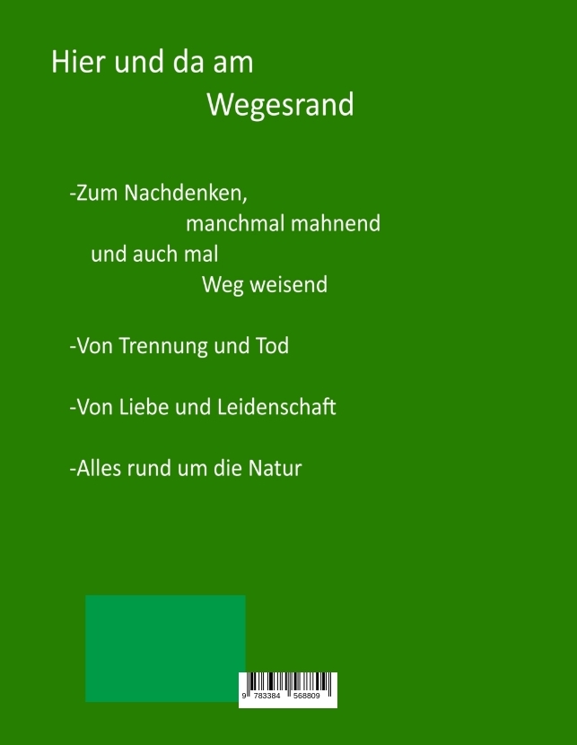 Eine Sammlung von Gedichten, die ich in den letzten Jahren geschrieben habe. Sie sind zum Nachdenken, manchmal mahnend und auch mal Weg weisend.Dann wieder auch von Trennung und Tod, von Liebe und Leidenschaften und schlussendlich rund um die Natur.
