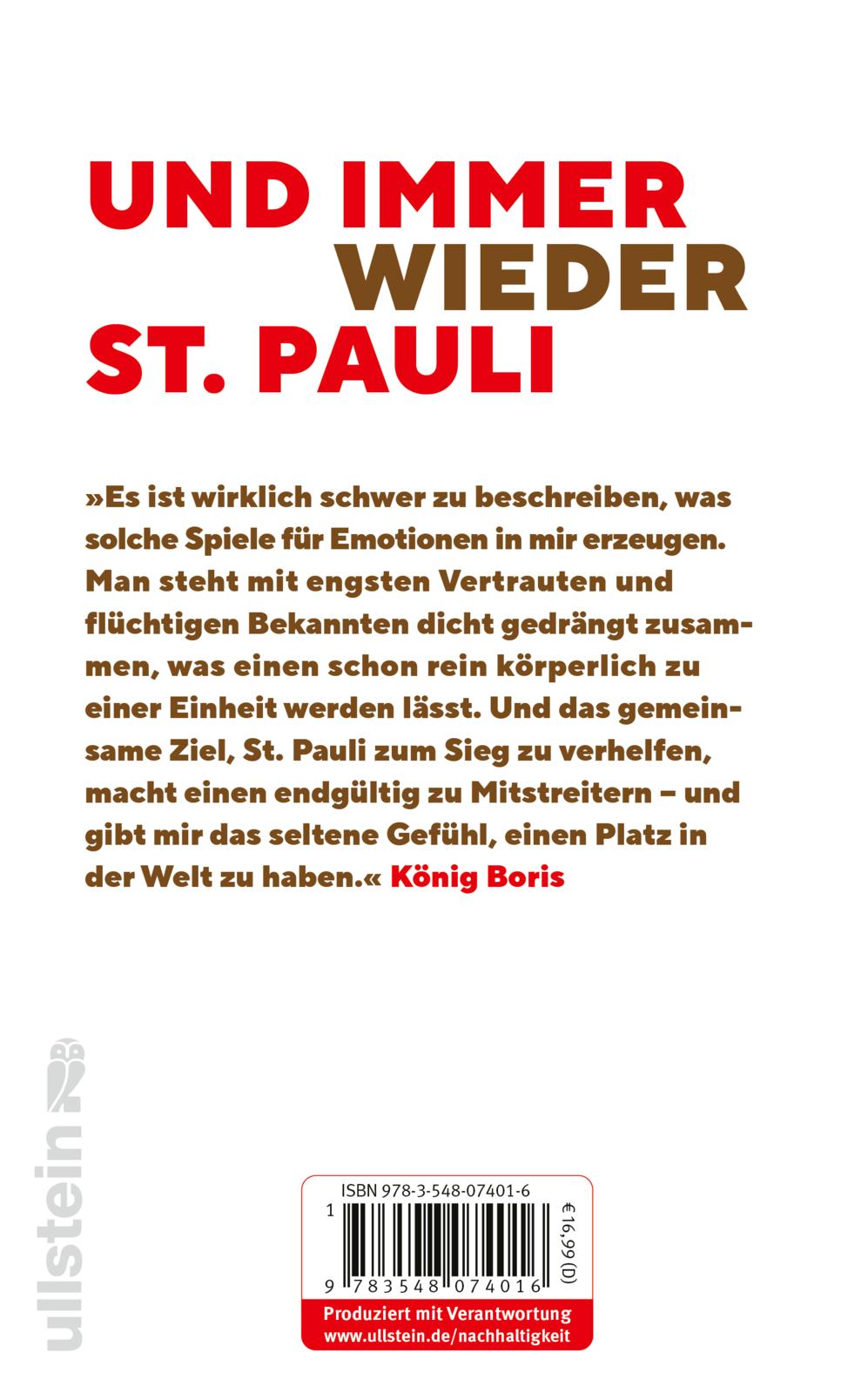 König Boris, ein Drittel der HipHop-Band Fettes Brot, pflegt seit mehr als 35 Jahren eine innige Beziehung zu seinem Lieblingsverein. In diesem Buch nimmt der Musiker und eingefleischte Fan die Leser mit auf eine emotionale Reise durch seine ganz persönliche St. Pauli-Geschichte. Von den ersten Stadionbesuchen als Teenager bis hin zu legendären Anekdoten - wie der spontanen Idee, einen Song für Trainerlegende Ewald Lienen zu schreiben - erzählt König Boris mit viel Humor und Herzblut, was diesen Verein so einzigartig macht.