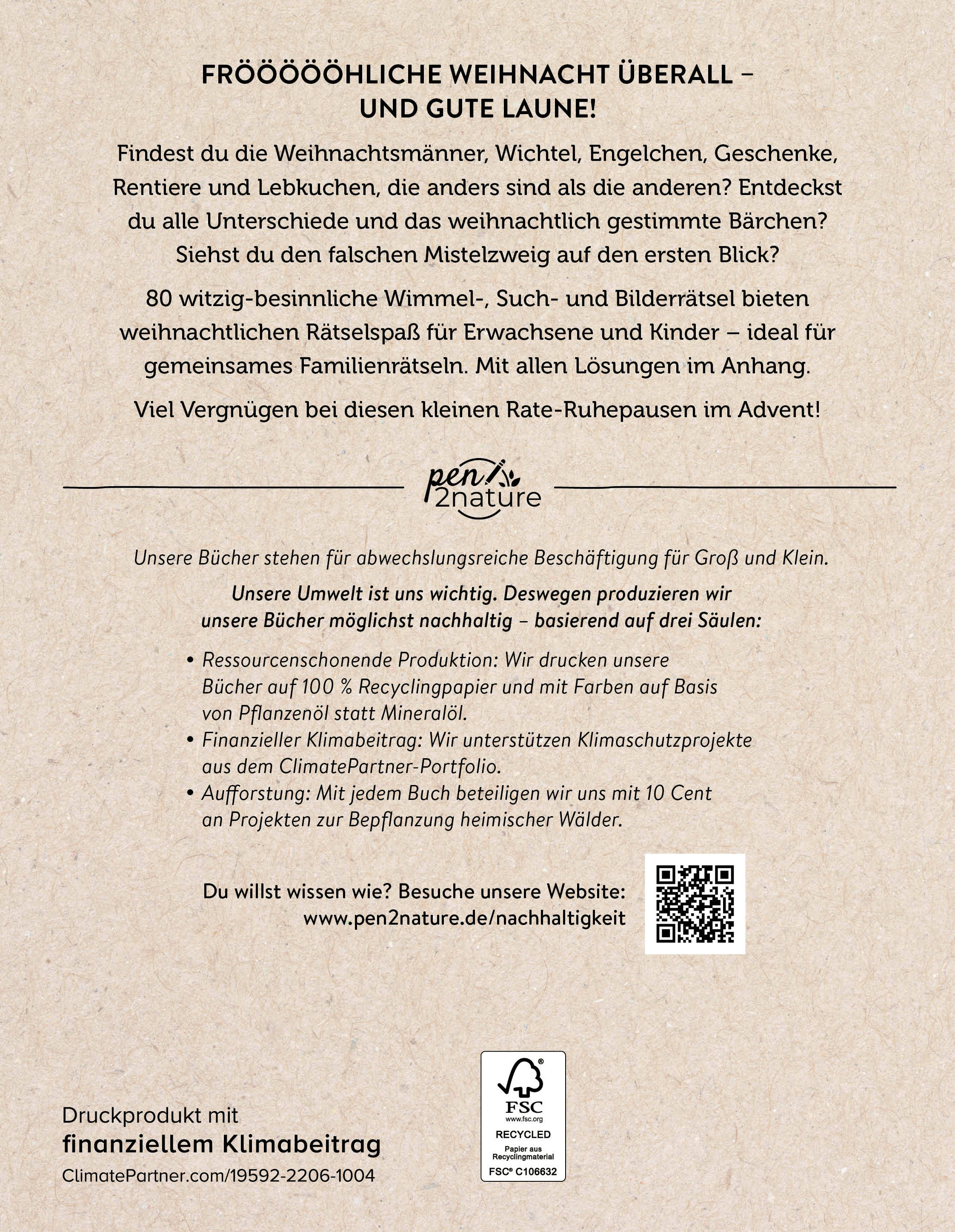 | Schlagworte | Advent • Christbaum • Nikolausgeschenk • Rätsel für Erwachsene • Suchbilder • Tierrätsel • Weihnachtsstimmung • Wichtel • Wichteltür • Wimmelbilder • Wimmelrätsel |