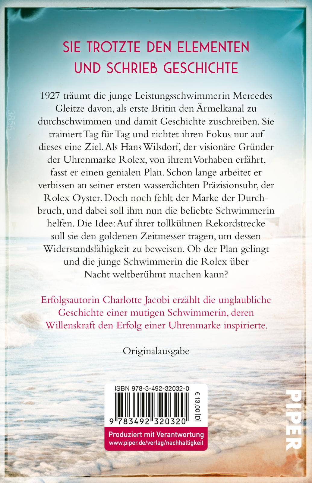 | Schlagworte | britische Küste • Charlotte Jakobi • England • Eva-Maria Bast • Hans Wilsdorf • historischer Roman 20. Jahrhundert • Jörn Precht • Mercedes Gleitze • mutige Frauen • Schwimmerin • Spiegel-Bestseller-Autorin • Uhrenmacher • Wahre Begebenheit |