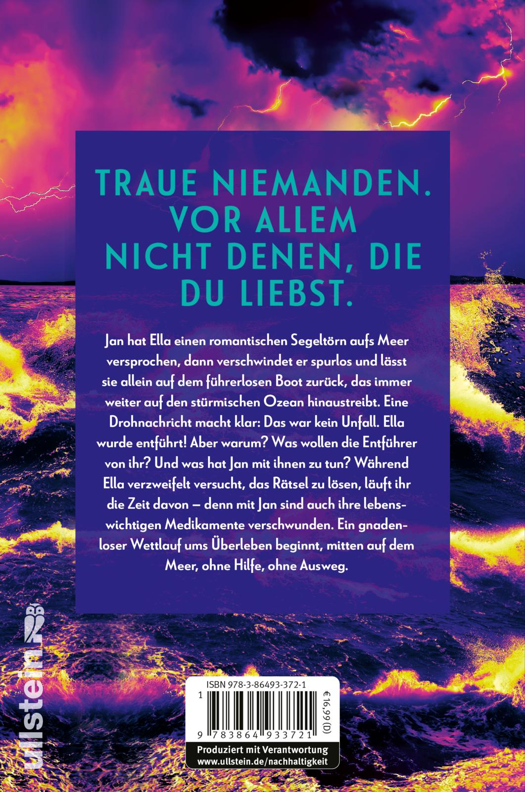 Ella bangt um sein Leben, während das Boot immer weiter aufs stürmische Meer hinaustreibt. Dann bekommt sie eine Drohnachricht. Offensichtlich wurde sie entführt. Aber warum? Ein Wettlauf gegen die Zeit beginnt, denn mit Jan sind auch Ellas lebenswichtige Medikamente über Bord gegangen. Wie soll sie sich retten mitten auf dem Ozean?