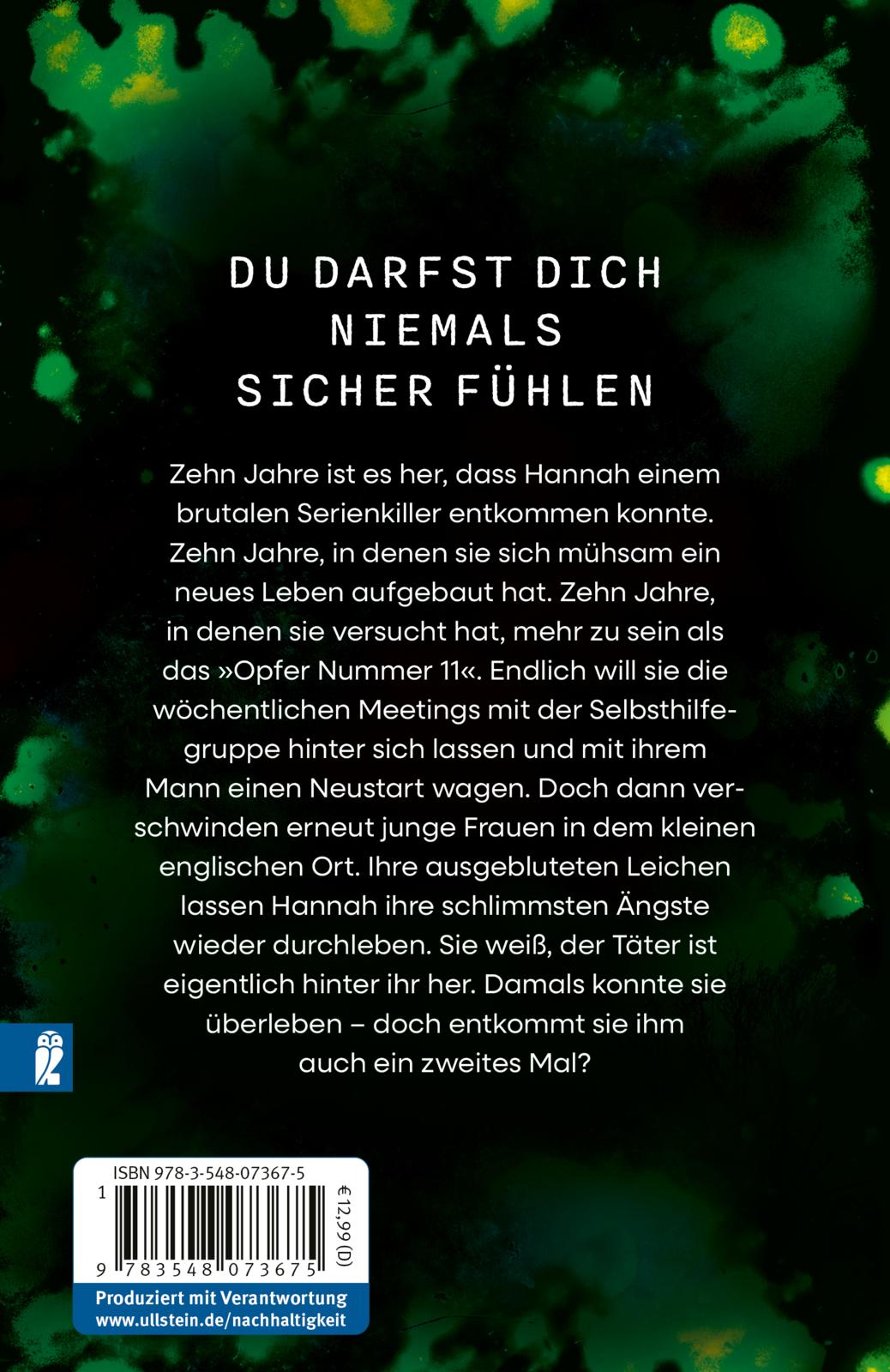 Zehn Jahre ist es her, dass Hannah einem brutalen Serienkiller entkommen konnte. Zehn Jahre, in denen sie sich mühsam ein neues Leben aufgebaut hat. Zehn Jahre, in denen sie versucht hat, mehr zu sein als das »Opfer Nummer 11«. Endlich will sie die wöchentlichen Meetings mit der Selbsthilfegruppe hinter sich lassen und mit ihrem Mann einen Neustart wagen. Doch dann verschwinden wieder junge Frauen in dem kleinen englischen Ort. Ihre ausgebluteten Leichen lassen Hannah ihre schlimmsten Ängste wieder durchleben. Sie weiß, der Täter ist eigentlich hinter ihr her. Damals konnte sie überleben - doch reicht ihr Glück auch ein zweites Mal?