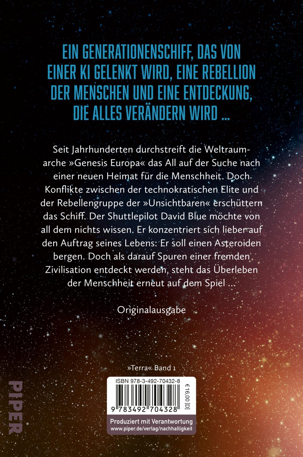 Seit Jahrhunderten durchstreift die Weltraumarche »Genesis Europa« das All auf der Suche nach einer neuen Heimat für die Menschheit. Doch Konflikte zwischen der technokratischen Elite und der Rebellengruppe der »Unsichtbaren« erschüttern das Schiff. Der Shuttlepilot David Blue möchte von all dem nichts wissen, denn er geht voll in seiner Arbeit auf. Als er beauftragt wird, einen Asteroiden zu bergen, freut er sich über den Auftrag seines Lebens. Doch dann werden darauf Spuren einer fremden Zivilisation entdeckt - und plötzlich steht das Überleben der Menschheit erneut auf dem Spiel ...