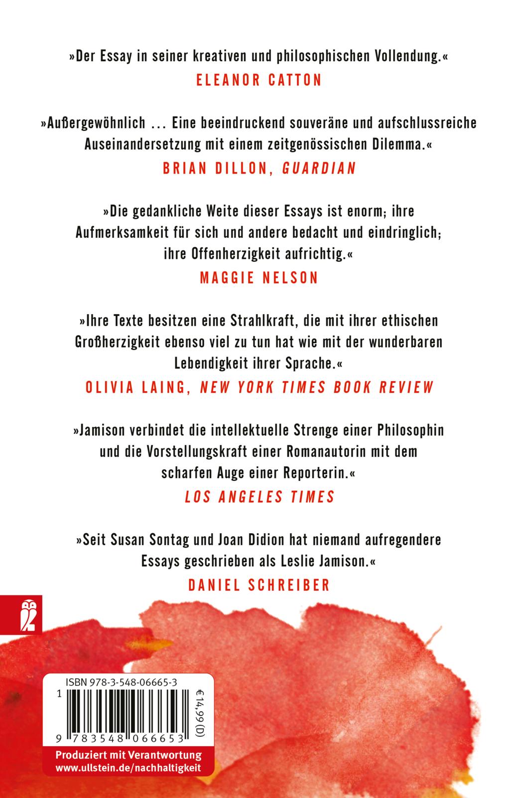 »Seit Susan Sontag und Joan Didion hat niemand aufregendere Essays geschrieben als Leslie Jamison.« Daniel Schreiber