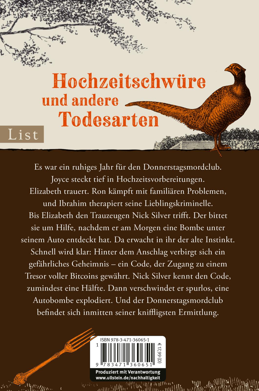 Doch als Elizabeth einen Hochzeitsgast trifft, der in Schwierigkeiten steckt, sind Entführung und Tod dem Donnerstagsmordclub wieder dicht auf den Fersen. Ein Bösewicht will Zugang zu einem unknackbaren Code und schreckt vor nichts zurück, um ihn zu bekommen. Und schon sind die vier Hobbydetektive wieder zurück in ihrem Element: Mörder zu jagen und Rätsel zu lösen und dabei klüger als die Polizei zu sein!