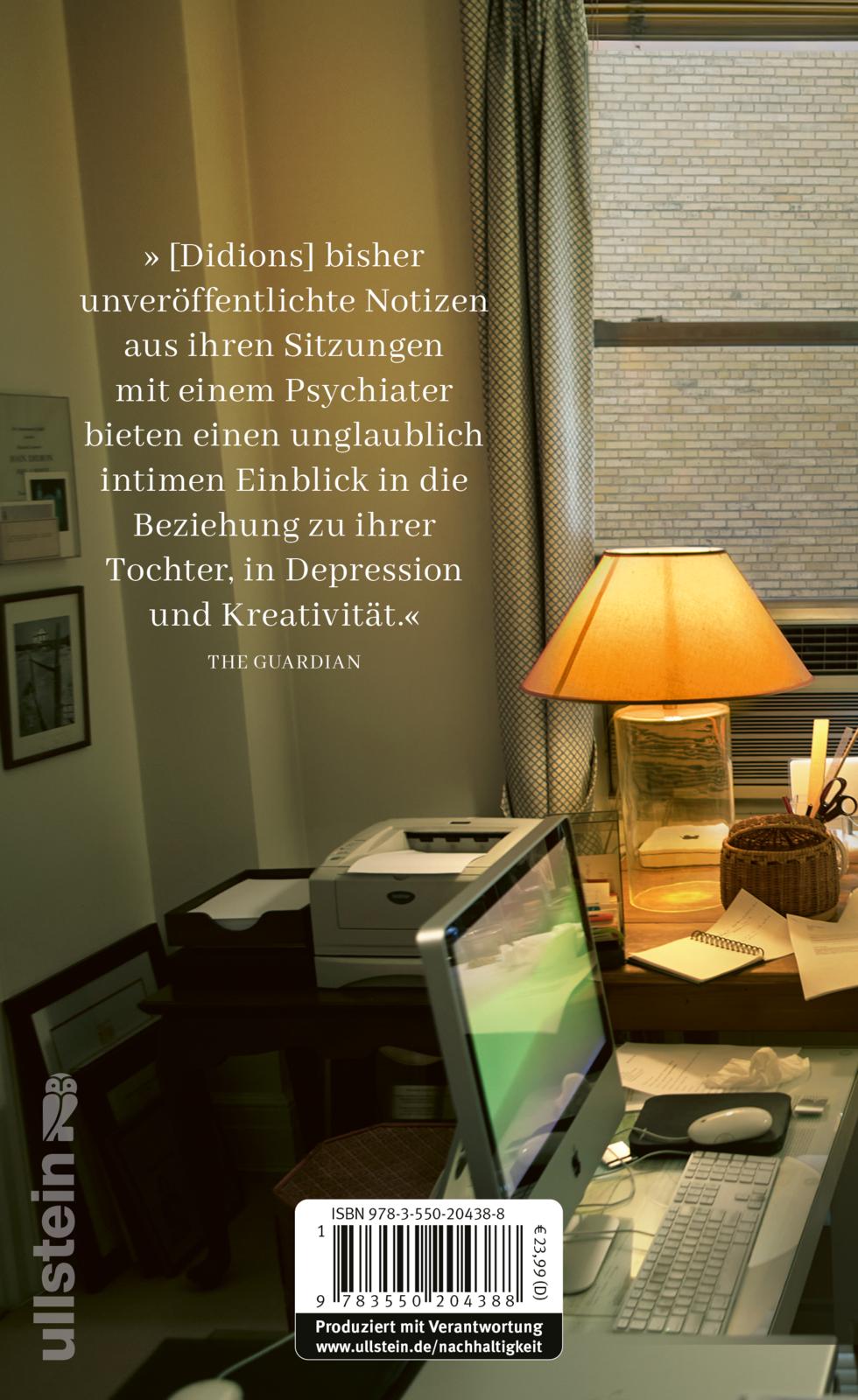 Im November 1999 begann Joan Didion, einen Psychiater aufzusuchen, weil ihre Familie, wie sie einem Freund schrieb, "ein paar harte Jahre" hinter sich hatte. Die wöchentlichen Sitzungen notierte sie in einem Tagebuch, das sie für ihren Ehemann John Gregory Dunne anlegte. Ihre Gedanken und Gespräche kreisen um das herzzereißend komplexe Verhältnis zu ihrer Tochter Quintana, um die Alkoholsucht ihrer Tochter, um die Prägungen durch ihre Kernfamilie, ihr literarisches Schaffen und nicht weniger als die Frage nach ihrem Vermächtnis, oder, wie Didion sagte, "was es wert gewesen ist."