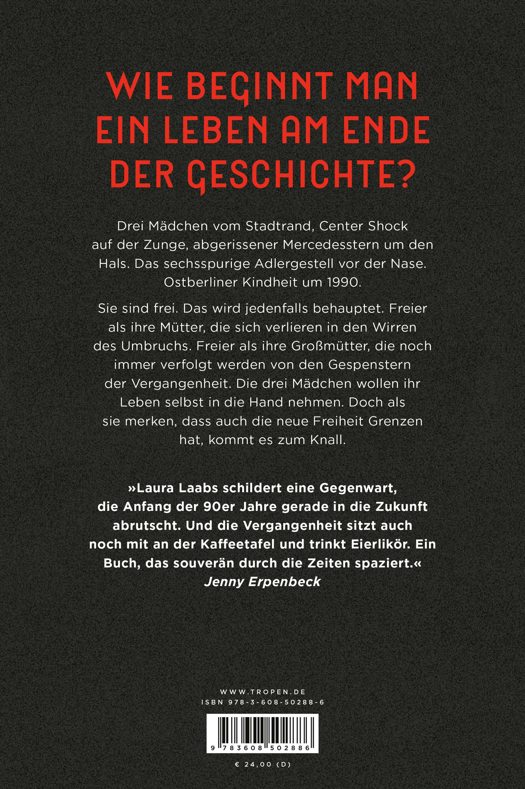 »Laura Laabs schildert eine Gegenwart, die Anfang der 90er Jahre gerade in die Zukunft abrutscht. Und die Vergangenheit sitzt auch noch mit an der Kaffeetafel und trinkt Eierlikör. Ein Buch, das souverän durch die Zeiten spaziert.« Jenny Erpenbeck