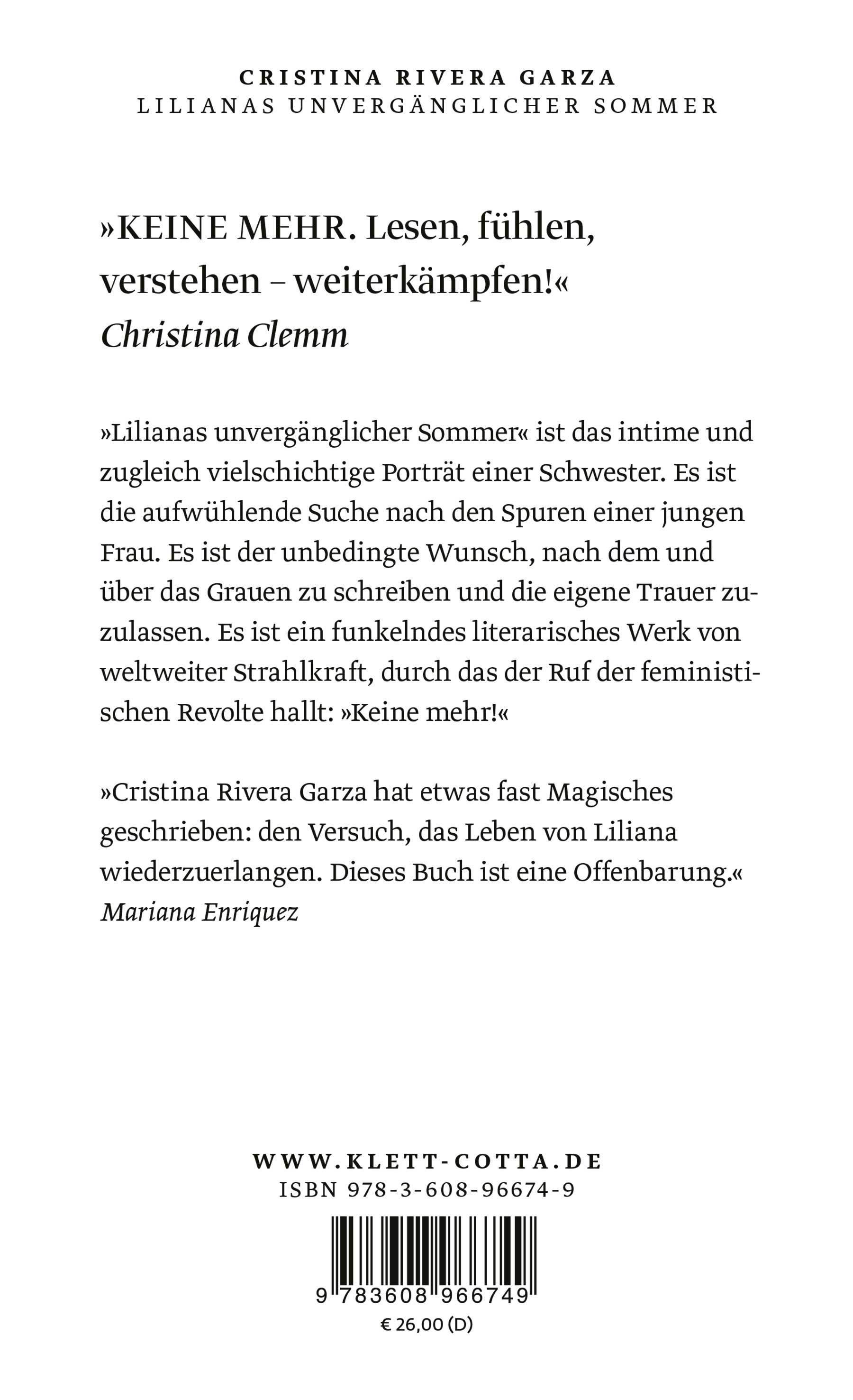 »Cristina Rivera Garza hat etwas fast Magisches geschrieben: den Versuch, das Leben von Liliana wiederzuerlangen. Dieses Buch ist eine Offenbarung.« Mariana Enriquez