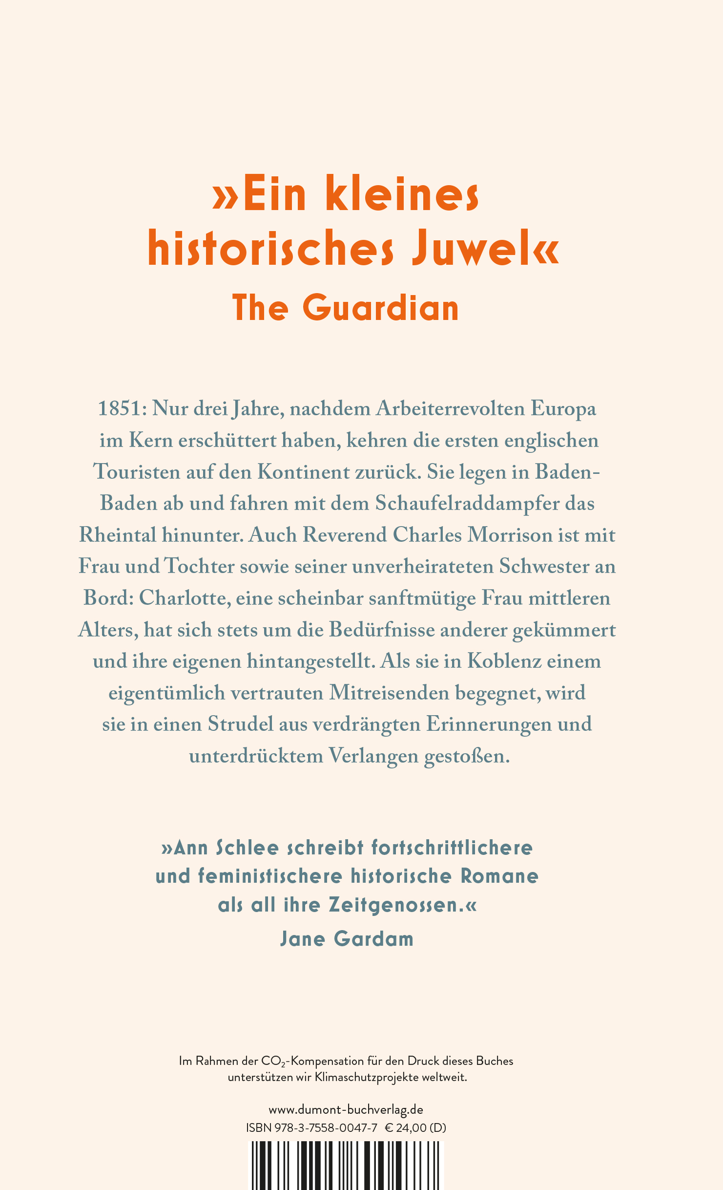 »Ann Schlee ist der Geheimtipp der Saison: 'Die Rheinreise' ist traumhaft schön.« Elmar Krekeler, DIE WELT »[E]in Lesevergnügen!« Anja Weigmann, NÜRNBERGER NACHRICHTEN »[E]rschütternd schön und schön gegenwärtig« Elmar Krekeler, DIE WELT »eine [...] fesselnde [...] Studie viktorianischer Seelennöte« Oliver Pfohlmann, DER STANDARD »[Ein] vergessenes Meisterwerk« Oliver Pfohlmann, SWR LESENSWERT »[E]benso zart wie psychologisch subtil erzählte Geschichte eines späten Erwachens einer Frau im viktorianischen Zeitalter.« Ronald Schneider, RHEINISCHE POST »[V]ergessenes Meisterwerk« Oliver Pfohlmann, ABENDZEITUNG MÜNCHEN »Unheimlich lesenswert« Katrin Schumacher, MDR KULTUR »Hier ist eine literarische Stimme am Werk, die zweifellos eine Entdeckung darstellt.« Thomas Linden, KÖLNISCHE RUNDSCHAU »Mit großem Feingefühl« Ulrich Rüdenauer, MDR KULTUR »[S]chlank erzählt, sensibel, psychologisch feinsinnig, überaus menschlich.« Alexander Kluy, BUCHKULTUR »Ein formidabler Roman, so schimmernd, zart und kostbar wie eine Perle.« Susanne Schramm, AACHENER ZEITUNG »Charmant und liebevoll erzählt« Rainer Moritz, ODENWÄLDER ECHO »Gut lesbarer Roman [...] ebenso einfühlsam wie psychologisch stimmig die innere Emanzipation einer Frau nach, die über der Dienstbarkeit und dem Engagement für andere sich selbst vergessen hatte.«. Dr. Roland Schneider, EKZ.BIBLIOTHEKSSERIVCE »[Die] Wiederentdeckung ist ein Glücksfall. Die reiche Bildsprache, Spannung, Ereignisse und überraschende Wendungen machen das Buch zu einer empfehlenswerten Lektüre.« Sabine Kaufmann, MUSENBLÄTTER
