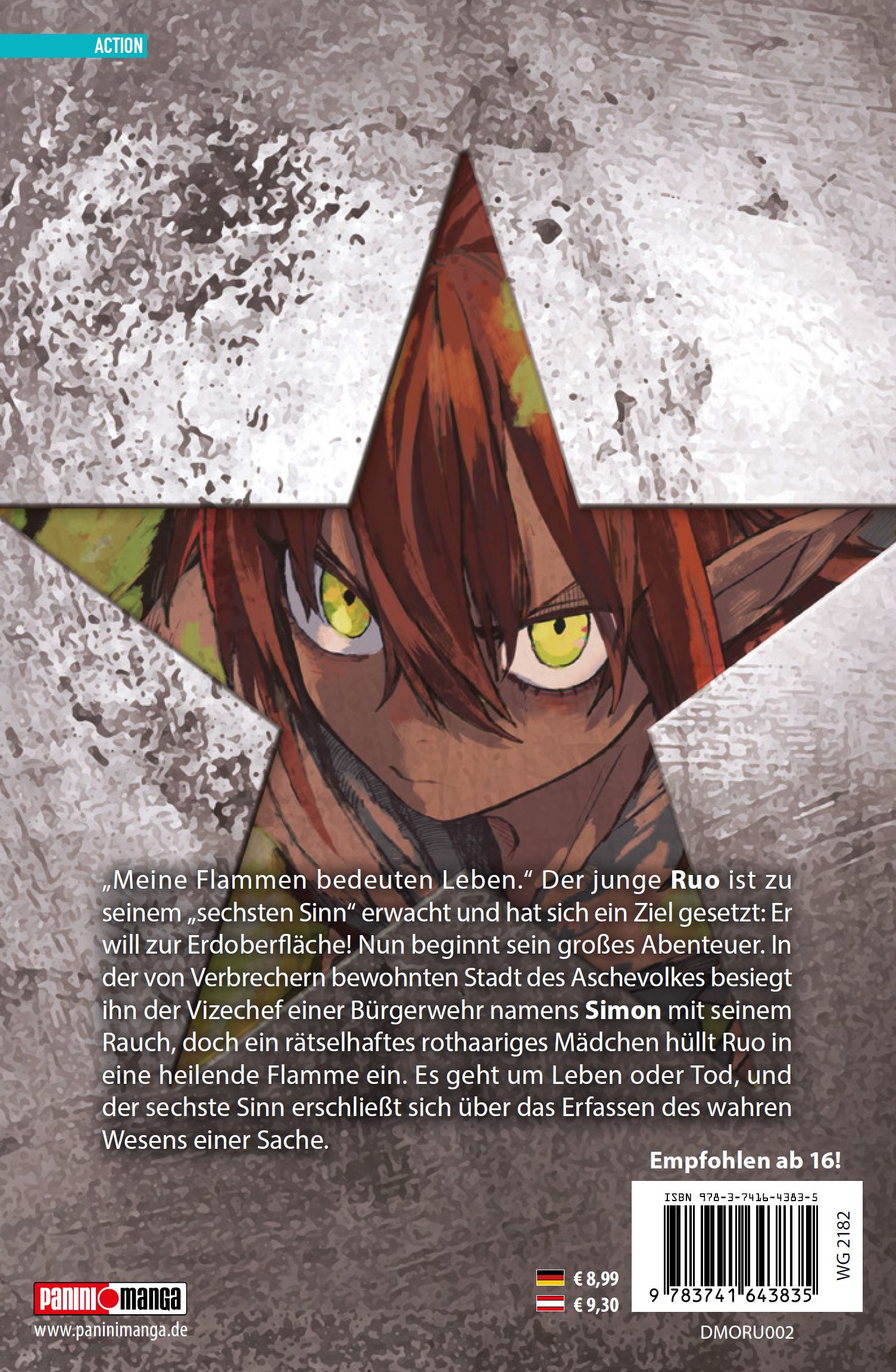 Begleite in diesem spannenden und actionreichen Fantasymanga den jungen Ruo auf ein unvergessliches Abenteuer, das seine ganze Welt verändern wird! Man kann das Prinzip der Natur mit dem Geist erfassen und in Kraft umwandeln ... Diese Fähigkeit bezeichnet man als "sechsten Sinn". Weit unterhalb der Erdoberfläche, in der Welt der "Hinabgestoßenen", die nicht über diesen sechsten Sinn verfügen und als Nichtsnutze gelten, macht der Junge Ruo einen Fund, der sein Leben verändert ... Das erwartet dich in Band 2: "Meine Flammen bedeuten Leben." Der junge Ruo ist zu seinem "sechsten Sinn" erwacht und hat sich ein Ziel gesetzt: Er will zur Erdoberfläche! Nun beginnt sein großes Abenteuer. In der von Verbrechern bewohnten Stadt des Aschevolkes besiegt ihn der Vizechef einer Bürgerwehr namens Simon mit seinem Rauch, doch ein rätselhaftes rothaariges Mädchen hüllt Ruo in eine heilende Flamme ein. Es geht um Leben oder Tod, und der sechste Sinn erschließt sich über das Erfassen des wahren Wesens einer Sache.Für Fans von Action-Fantasy-Manga wie Dragon Ball, Fairy Tail und Seven Deadly Sins!