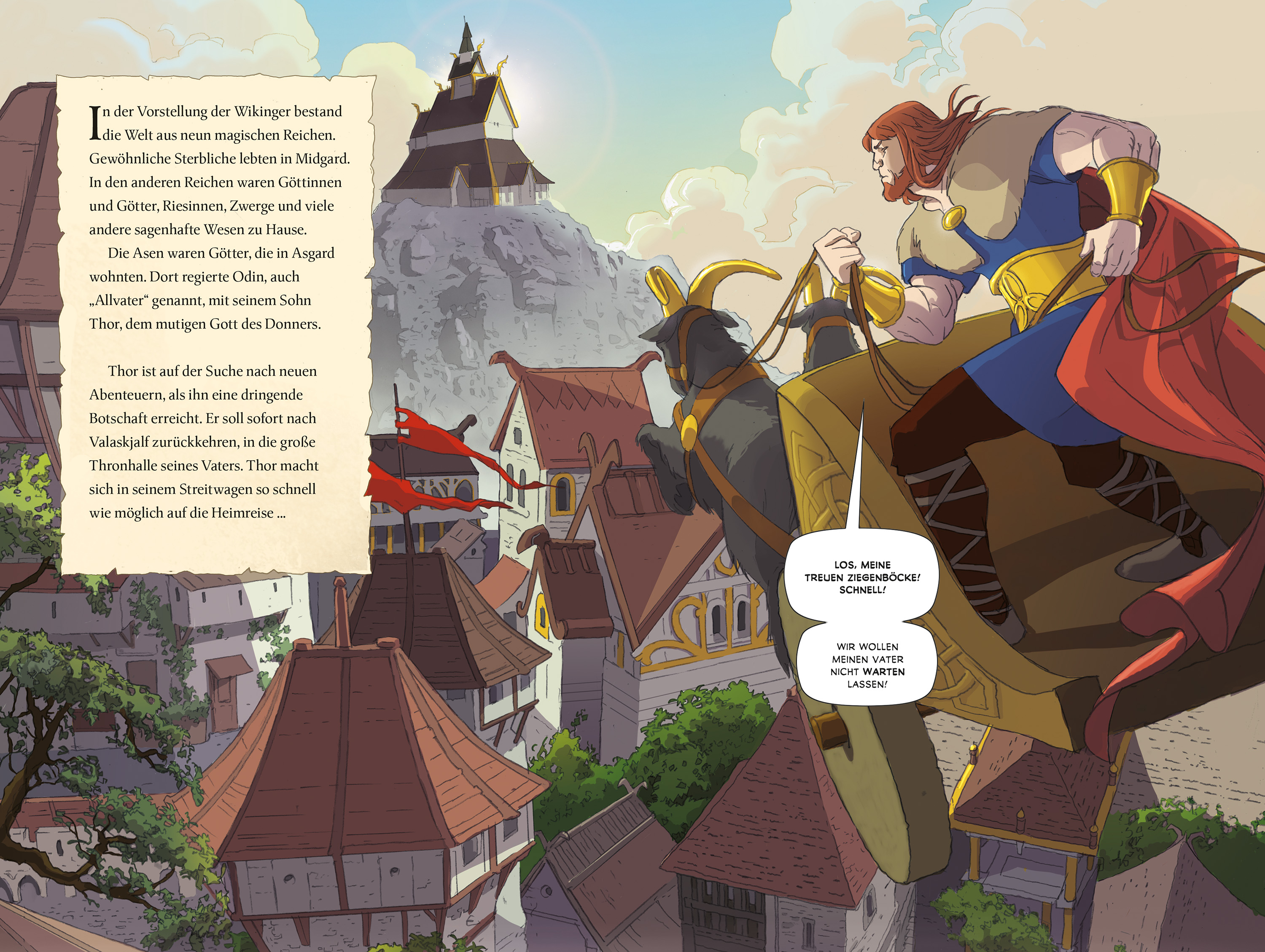 nordische Mythologie als Graphic Novel - durchgehend farbig und in viele Abenteuer-Abschnitte unterteilt - für Kinder ab 10 Jahren