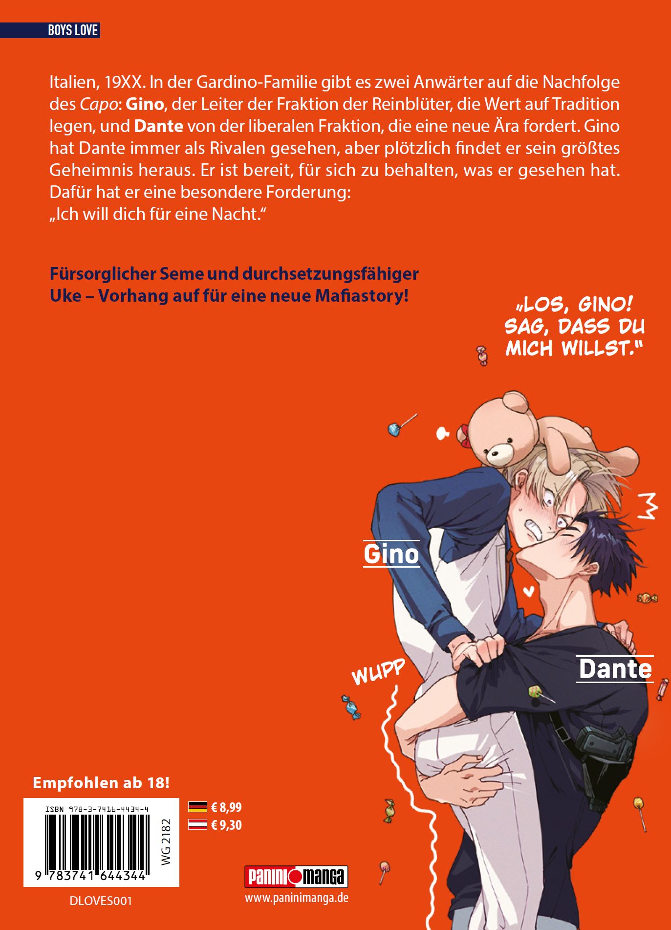 Mafia, Rivalitäten, Geheimnisse und heiße, verbotene BL! Italien, 19XX. In der Gardino-Familie gibt es zwei Anwärter auf die Nachfolge des Capo: Gino, der Leiter der Fraktion der Reinblüter, die Wert auf Tradition legen, und Dante von der liberalen Fraktion, die eine neue Ära fordert. Gino hat Dante immer als Rivalen gesehen, aber plötzlich ¬findet er sein größtes Geheimnis heraus. Er ist bereit, für sich zu behalten, was er gesehen hat. Dafür hat er eine besondere Forderung: "Ich will dich für eine Nacht." Fürsorglicher Seme und durchsetzungsfähiger Uke - Vorhang auf für eine neue Mafiastory!Für Fans von spannenden BL-Manga und Mafia-Storys!Empfohlen ab 18!