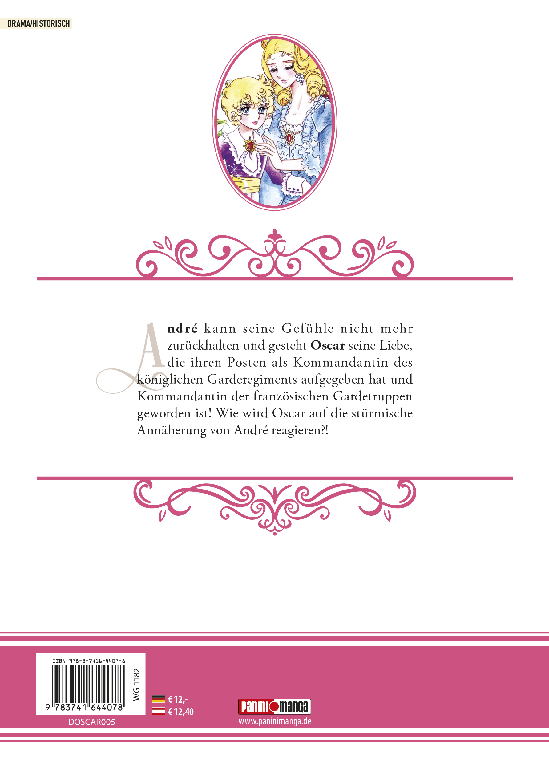 LADY OSCAR: DIE ROSE VON VERSAILLES entführt dich in das prunkvolle und turbulente Frankreich des 18. Jahrhunderts. Im Mittelpunkt steht die mutige und charismatische Oscar François de Jarjayes, die als Frau in einer Männerrolle aufwächst und zur Kommandantin der königlichen Garde wird. Begleite Oscar und ihre Kameraden durch eine Zeit voller politischer Intrigen, romantischer Verwicklungen und revolutionärer Umbrüche. Tauche ein in ein episches Drama, das historische Ereignisse und persönliche Schicksale meisterhaft verwebt. Das erwartet dich in Band 5: André kann seine Gefühle nicht mehr zurückhalten und gesteht Oscar seine Liebe, die ihren Posten als Kommandantin des königlichen Garderegiments aufgegeben hat und Kommandantin der französischen Gardetruppen geworden ist! Wie wird Oscar auf die stürmische Annäherung von André reagieren?!Ein Klassiker, der einen nie da gewesenen Boom auslöste und noch immer Menschen auf der ganzen Welt fasziniert! Lasst euch von der emotionalen Geschichte in Versailles und den brillanten Charakteren mitreißen! Genießt eine "Liebe", die über den sozialen Stand hinausgeht die trotz aller Widrigkeiten nicht aufgibt!