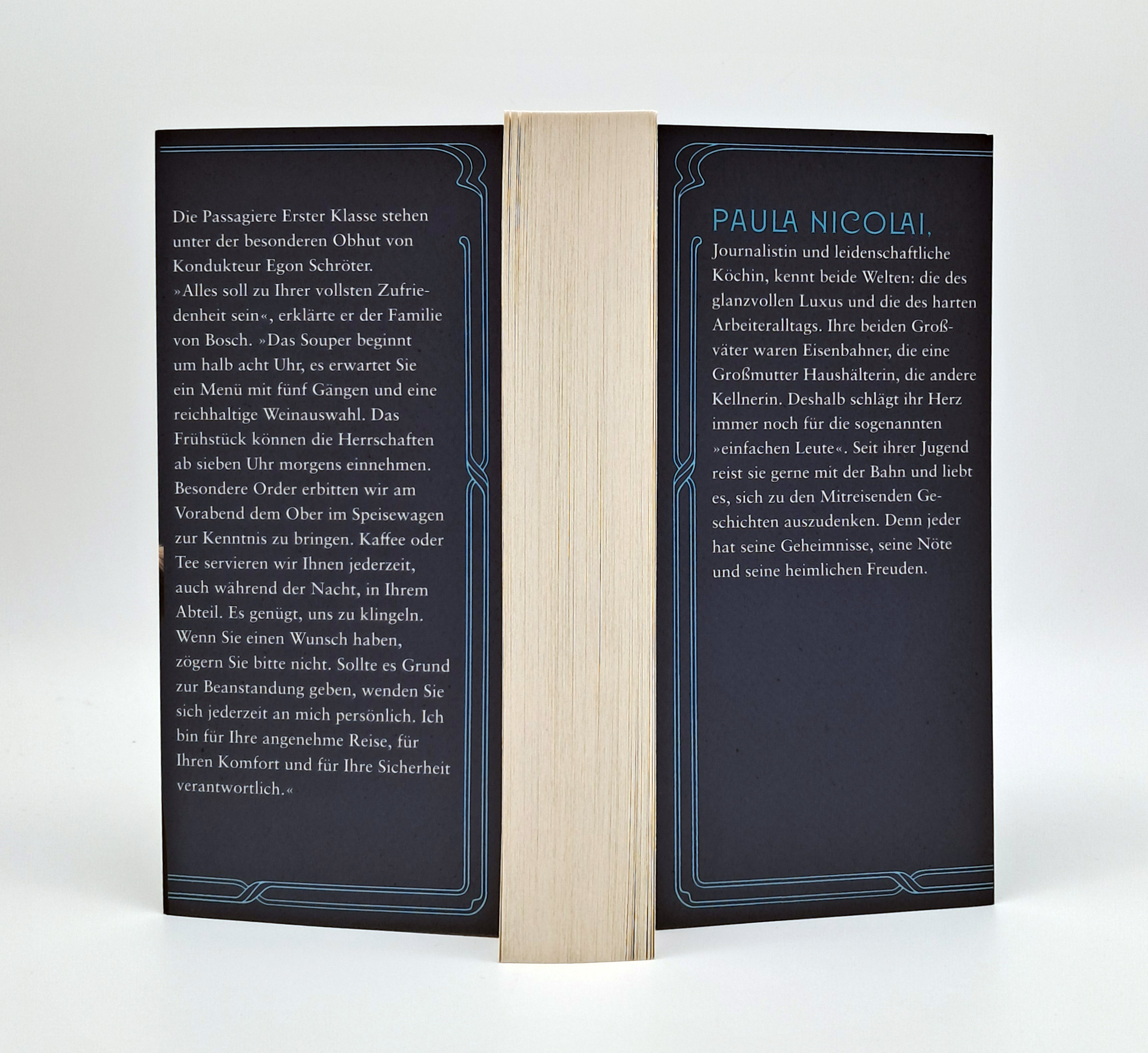 Paula Nicolai, Journalistin und leidenschaftliche Köchin, kennt beide Welten: die des glanzvollen Luxus und die des harten Arbeiteralltags. Ihre beiden Großväter waren Eisenbahner, die eine Großmutter Haushälterin, die andere Kellnerin. Deshalb schlägt ihr Herz immer noch für die sogenannten »einfachen Leute«, auch wenn sie es selbst zwischenzeitlich so weit gebracht hat, auch einmal im Grandhotel abzusteigen oder sich im Sternerestaurant verwöhnen zu lassen. Seit ihrer Jugend reist sie gerne mit der Bahn und liebt es, sich für die Mitreisenden Geschichten zu überlegen. Denn jeder hat ja seine Geheimnisse, seine Nöte und seine heimlichen Freuden.