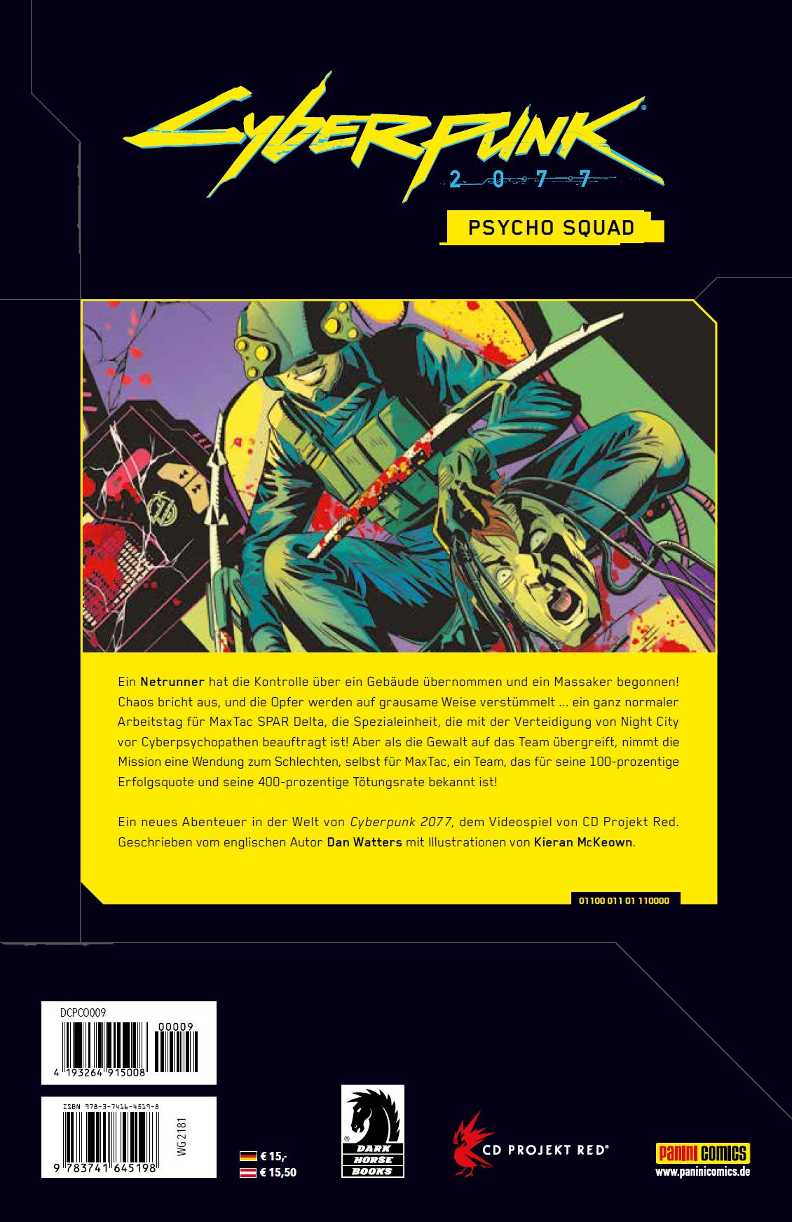 Ein Netrunner hat die Kontrolle über ein Gebäude übernommen und ein Massaker begonnen! Chaos bricht aus, und die Opfer werden auf grausame Weise verstümmelt ... ein ganz normaler Arbeitstag für MaxTac SPAR Delta, die Spezialeinheit, die mit der Verteidigung von Night City vor Cyberpsychopathen beauftragt ist! Aber als die Gewalt auf das Team übergreift, nimmt die Mission eine Wendung zum Schlechten, selbst für MaxTac, ein Team, das für seine 100-prozentige Erfolgsquote und seine 400-prozentige Tötungsrate bekannt ist!Ein neues Abenteuer in der Welt von Cyberpunk 2077, dem Videospiel von CD Projekt Red. Geschrieben vom englischen Autor Dan Watters mit Illustrationen von Kieran McKeown.
