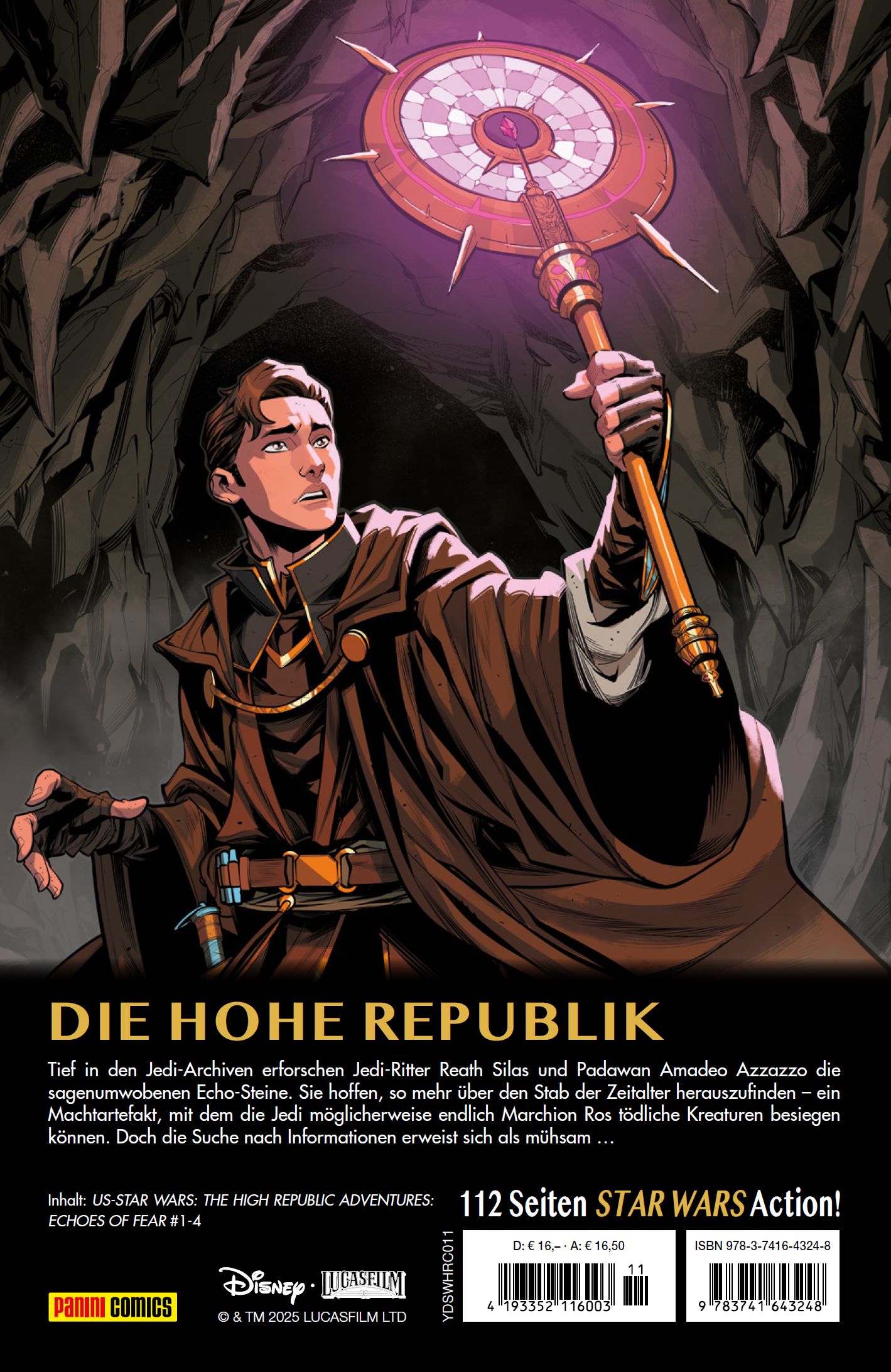 DIE HOHE REPUBLIKTief in den Jedi-Archiven erforschen Jedi-Ritter Reath Silas und Padawan Amadeo Azzazzo die sagenumwobenen Echo-Steine. Sie hoffen, so mehr über den Stab der Zeitalter herauszufinden - ein Machtartefakt, mit dem die Jedi möglicherweise endlich Marchion Ros tödliche Kreaturen besiegen können. Doch die Suche nach Informationen erweist sich als mühsam ...Inhalt: US-STAR WARS: THE HIGH REPUBLIC ADVENTURES: ECHOES OF FEAR #1-4