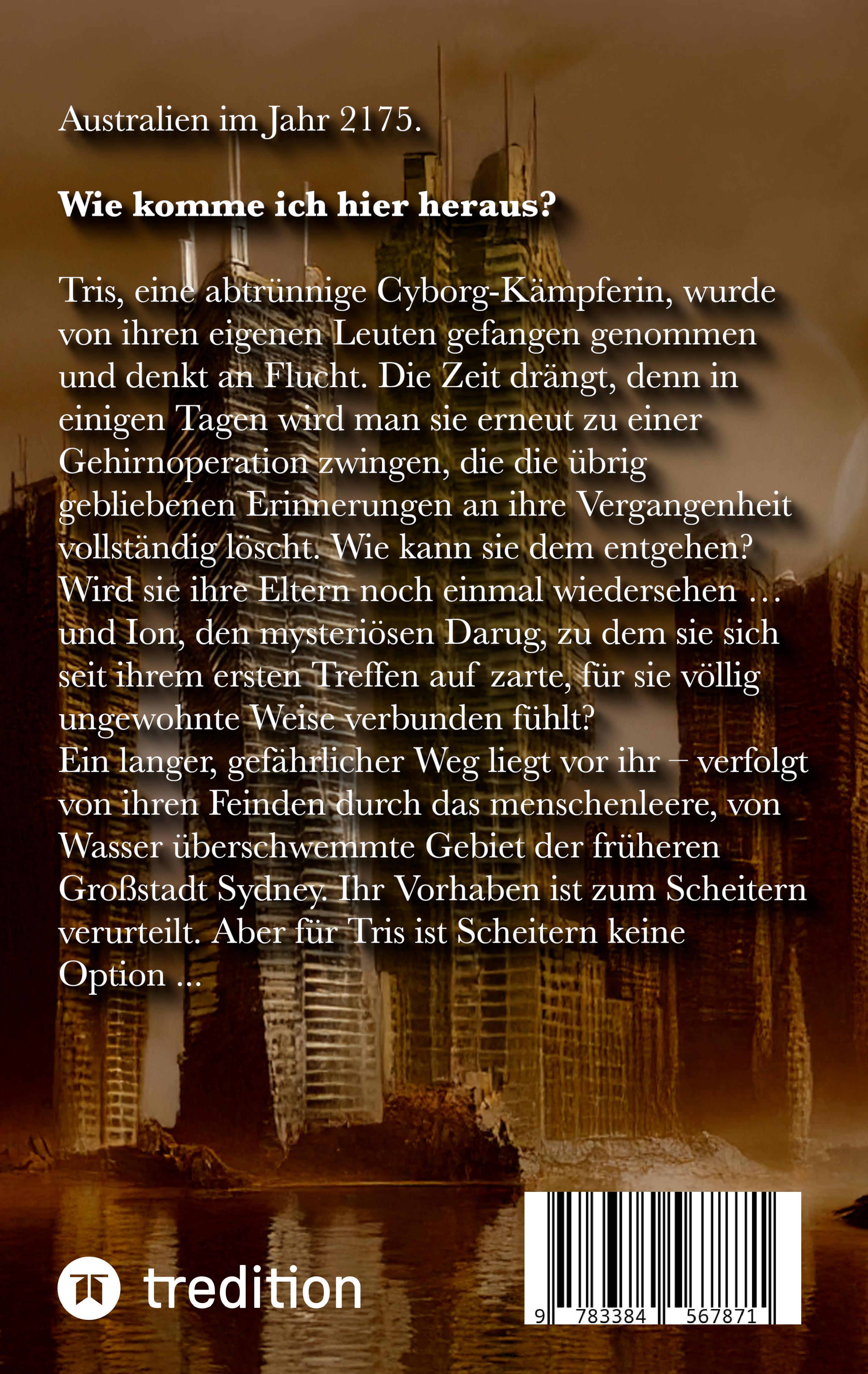 Australien im Jahr 2175. Wie komme ich hier heraus? Tris, eine abtrünnige Cyborg-Kämpferin, wurde von ihren eigenen Leuten gefangen genommen und denkt an Flucht. Die Zeit drängt, denn in einigen Tagen wird man sie erneut zu einer Gehirnoperation zwingen, die die übrig gebliebenen Erinnerungen an ihre Vergangenheit vollständig löscht. Wie kann sie dem entgehen? Wird sie ihre Eltern noch einmal wiedersehen ... und Ion, den mysteriösen Darug, zu dem sie sich seit ihrem ersten Treffen auf zarte, für sie völlig ungewohnte Weise verbunden fühlt? Ein langer, gefährlicher Weg liegt vor ihr - verfolgt von ihren Feinden durch das menschleere, von Wasser überschwemmte Gebiet der früheren Großstadt Sydney. Ihr Vorhaben ist zum Scheitern verurteilt. Aber für Tris ist Scheitern keine Option.