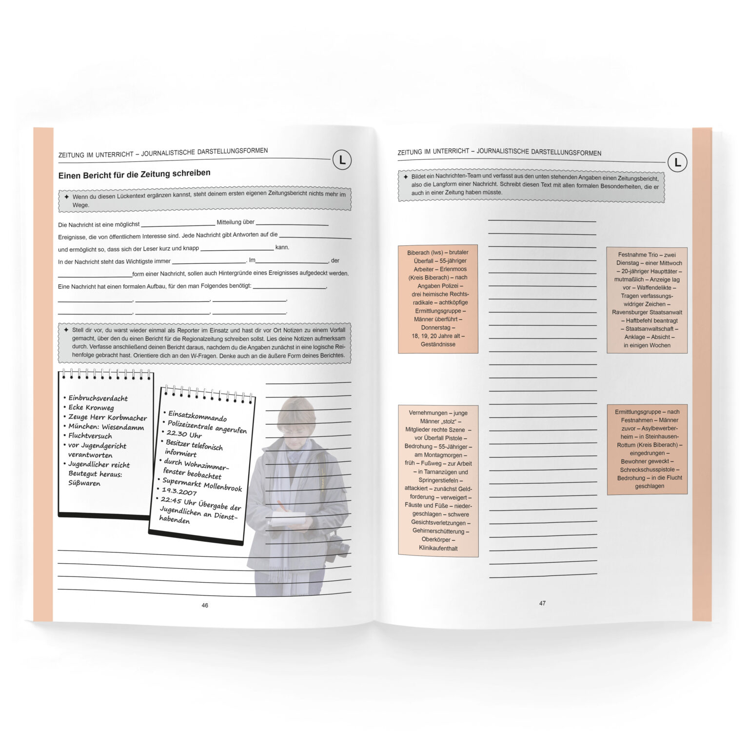 Unterrichtsmaterialien, Journalistische Schreibformen, Heft, Arbeitsblätter
