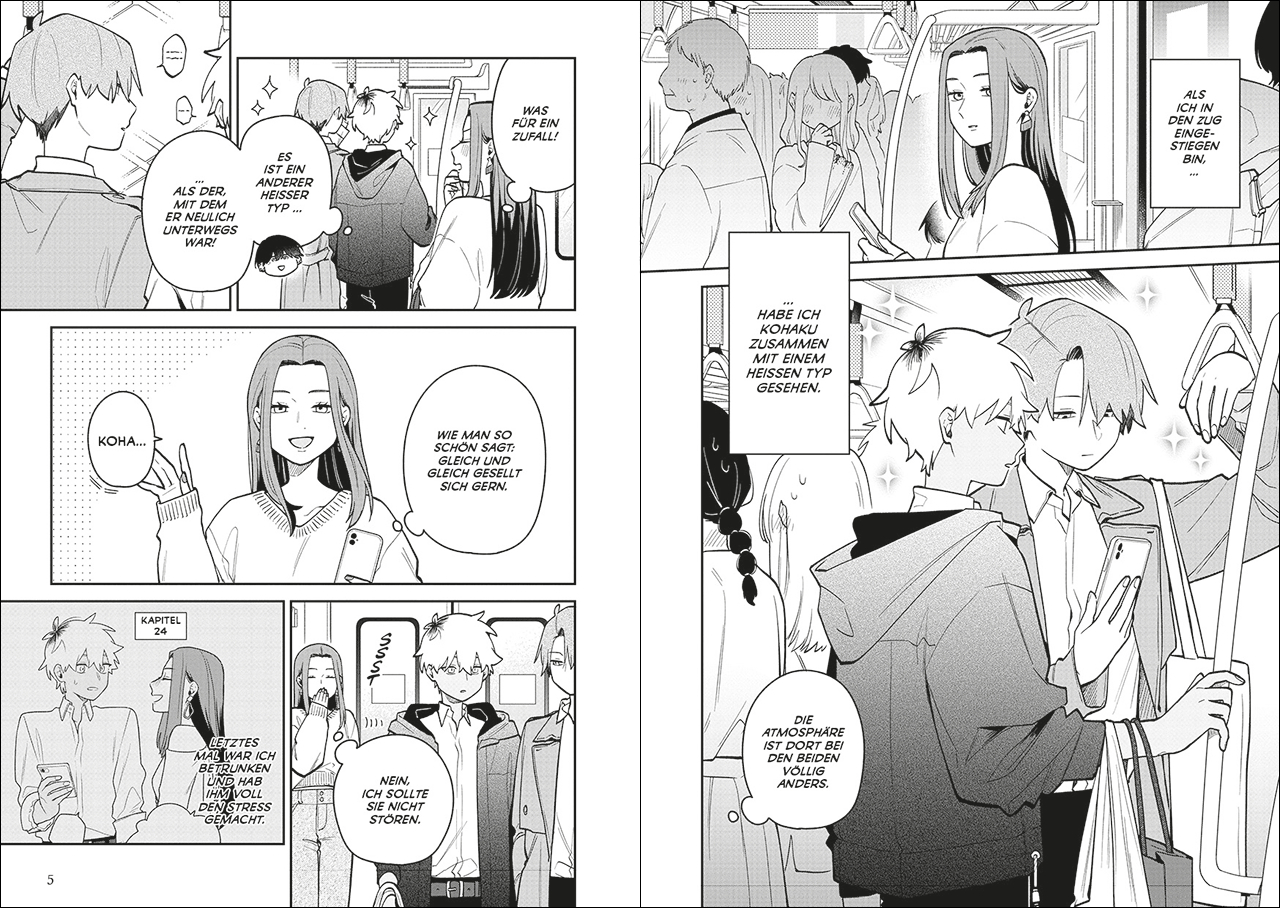 Oh mein Gott! Haben sich die beiden Mädels Kohaku und Fuji da gerade tatsächlich geküsst? Wenn das die Jungs erfahren! Dem ohnehin verunsicherten Hagi wird es den Boden unter den Füßen wegziehen! Dagegen wird der naive Asagi vermutlich eh nichts raffen, wie immer ... Aber auch Suo ist stinksauer, weil sich Fuji an ihren Tokiwa ranmacht. Was ist nur bei den Freunden los? Aber das ist erst der Anfang einer neuen Reihe von Missverständnissen ...