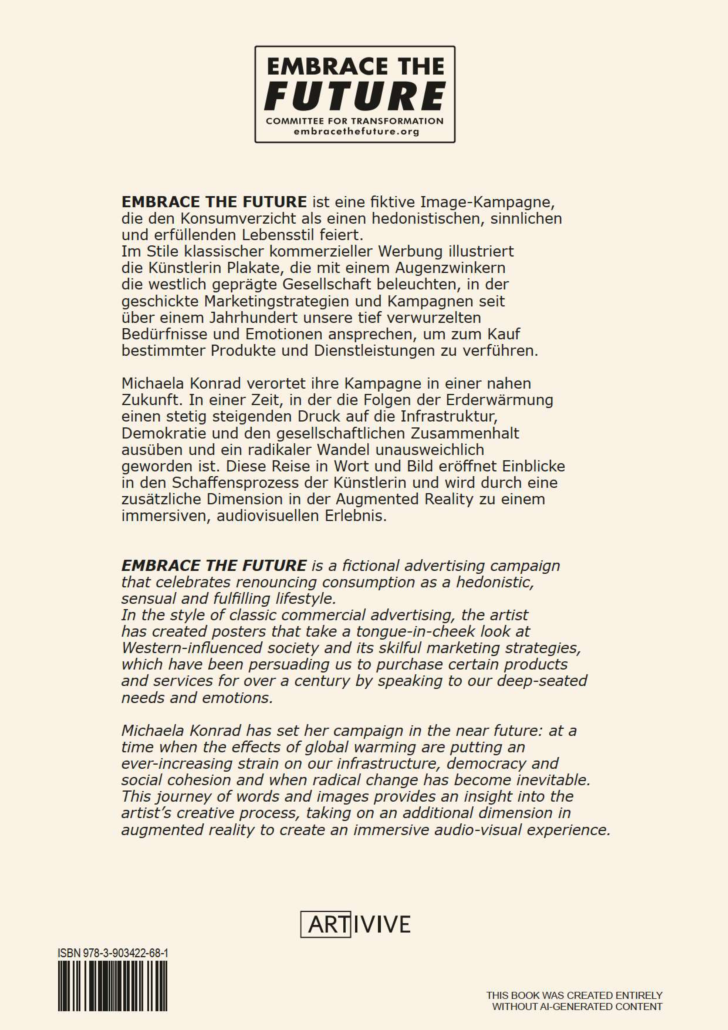 EMBRACE THE FUTURE ist eine fiktive Imagekampagne, die den Konsumverzicht als einen hedonistischen, sinnlichen und erfüllenden Lebensstil feiert.