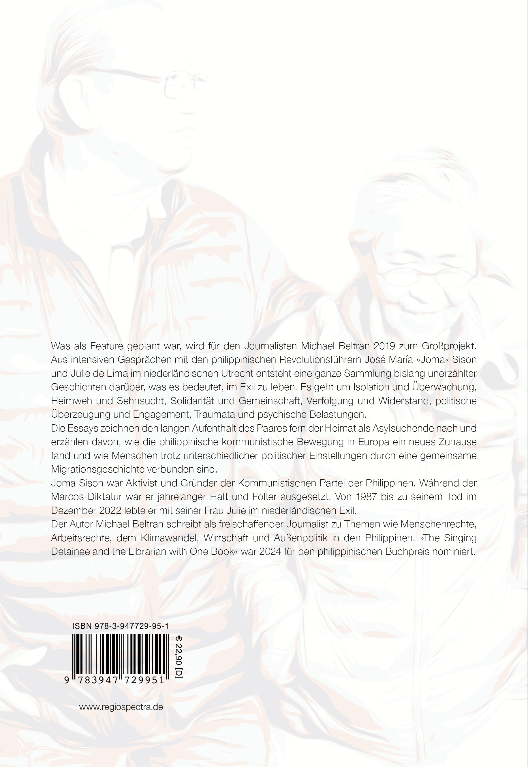 Joma Sison war Aktivist und Gründer der Kommunistischen Partei der Philippinen. Während der Marcos-Diktatur war er jahrelanger Haft und Folter ausgesetzt. Von 1987 bis zu seinem Tod im Dezember 2022 lebte er mit seiner Frau Julie im niederländischen Exil.