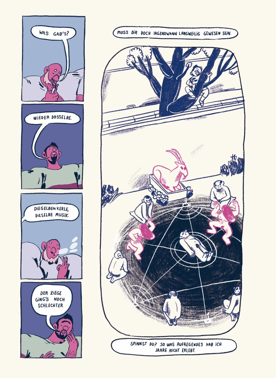 1768. Die Passagiere eines spanischen Segelschiffs gehen im Hafen von Buenos Aires an Land, darunter drei geheimnisvolle Frauen und ihre finster dreinblickende Ziege.In neun Geschichten aus unterschiedlichen Zeiten und Erzählperspektiven wird das Leben und Wirken dieser Frauen beleuchtet, die nie zu altern scheinen und mal wohltätig, mal rücksichtslos agieren. Sie beeinflussen das Leben vieler verschiedener Menschen, darunter ein von seiner plötzlich unbeherrschbaren Lust gequälter junger Mann, eine Bedienstete mit patagonisch-indigenen Wurzeln, die heimlich ein Kind großzieht, eine junge Internet-Freelancerin, deren Phobien sie an ihre Wohnung fesseln, eine abenteuerlustige, ein bisschen zu neugierige Schülerin, die ihre Erlebnisse in einem Tagebuch festhält...In diesem zwischen Horror und Komödie verorteten Erzählzyklus legt Sole Otero den Fokus auf weiblich zugeschriebene Kräfte wie Attraktion, Fürsorge und Hexerei. Nach NAPHTHALIN bestätigt die argentinische Zeichnerin mit HEXENKUNST ihren Status als eine der wichtigsten Stimmen des lateinamerikanischen Comics.