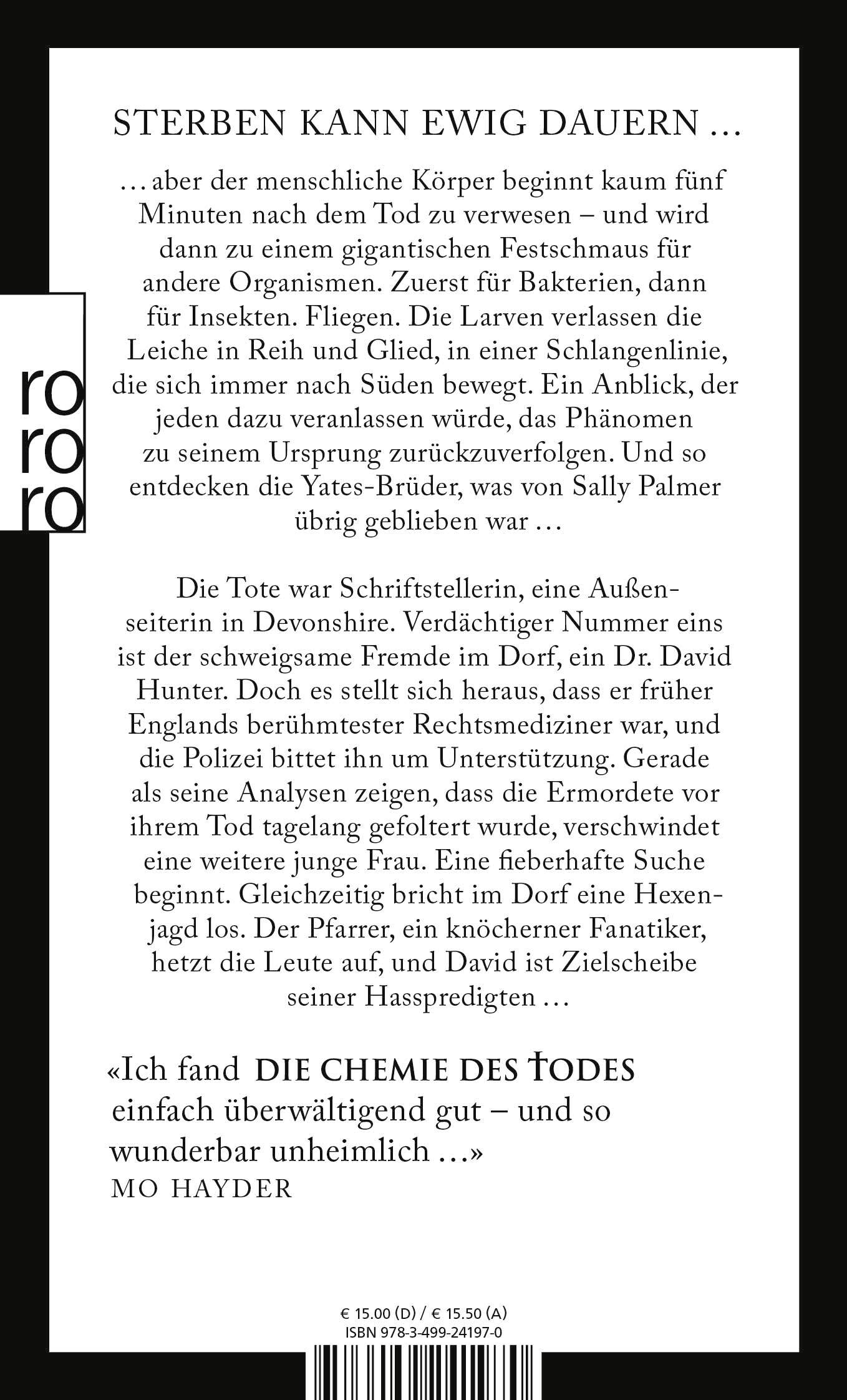 «‹Die Chemie des Todes› ist auf jeden Fall der beste Thriller, den ich in diesem Jahr gelesen habe. Ich konnte ihn nicht mehr aus der Hand legen.» (Tess Gerritsen)